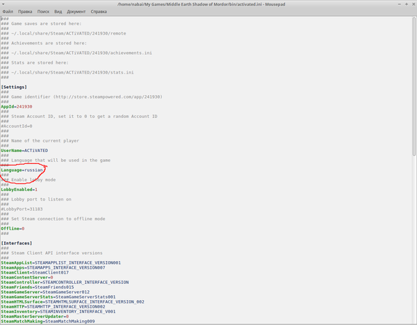 В данном случае копия игры пиратская и выбор языка меняется в файле Activated.ini, вот в этой строке