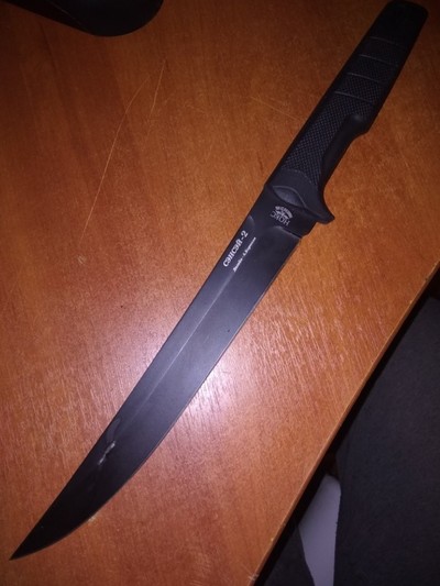 В тот день, я как раз ехал в коротком пальто, нож на поясе не виден но, если задрать руку на верхний поручень, так еще и пальто расстегнуть, то его становится видно.... Ехал, читал книгу, слушал музыку (мультизадачность, ага) почувствовал, какой-то рывок на поясе, как раз в районе подвеса... охреневаю, убираю книгу, фокусирую взгляд, охреневаю второй раз (так, алгоритм пройден, едем дальше) - мой нож пальцем трогает-тыкает какой-то жирный недоросль лет эдак 12-13 жрущий сникерс (оголодал бедолага, видать).... не, снять его всяко не получится просто так из-за удерживающего рукоять хлястика на кнопке и длины самого ножа. Рядом сидит сидит бабулька, утирающая слюни мелкому п**дюку... Я рывком бедра, отодвигаю цель интереса мелкого от его рук, он поднимает на меня глаза, видит что я его вижу, но продолжает тянуть руку.... Полагаю, что бабулька тоже видела действия мелкого засранца