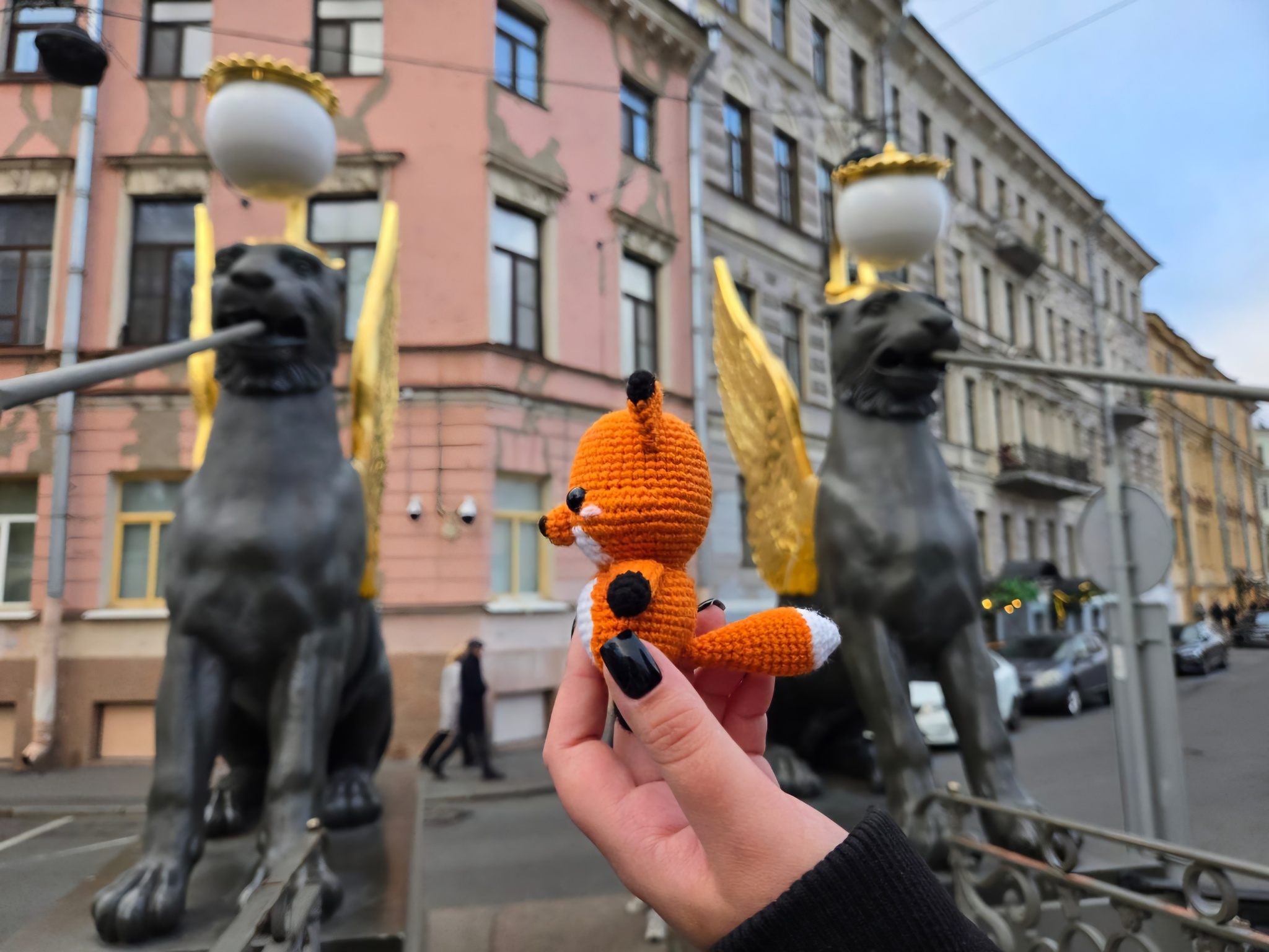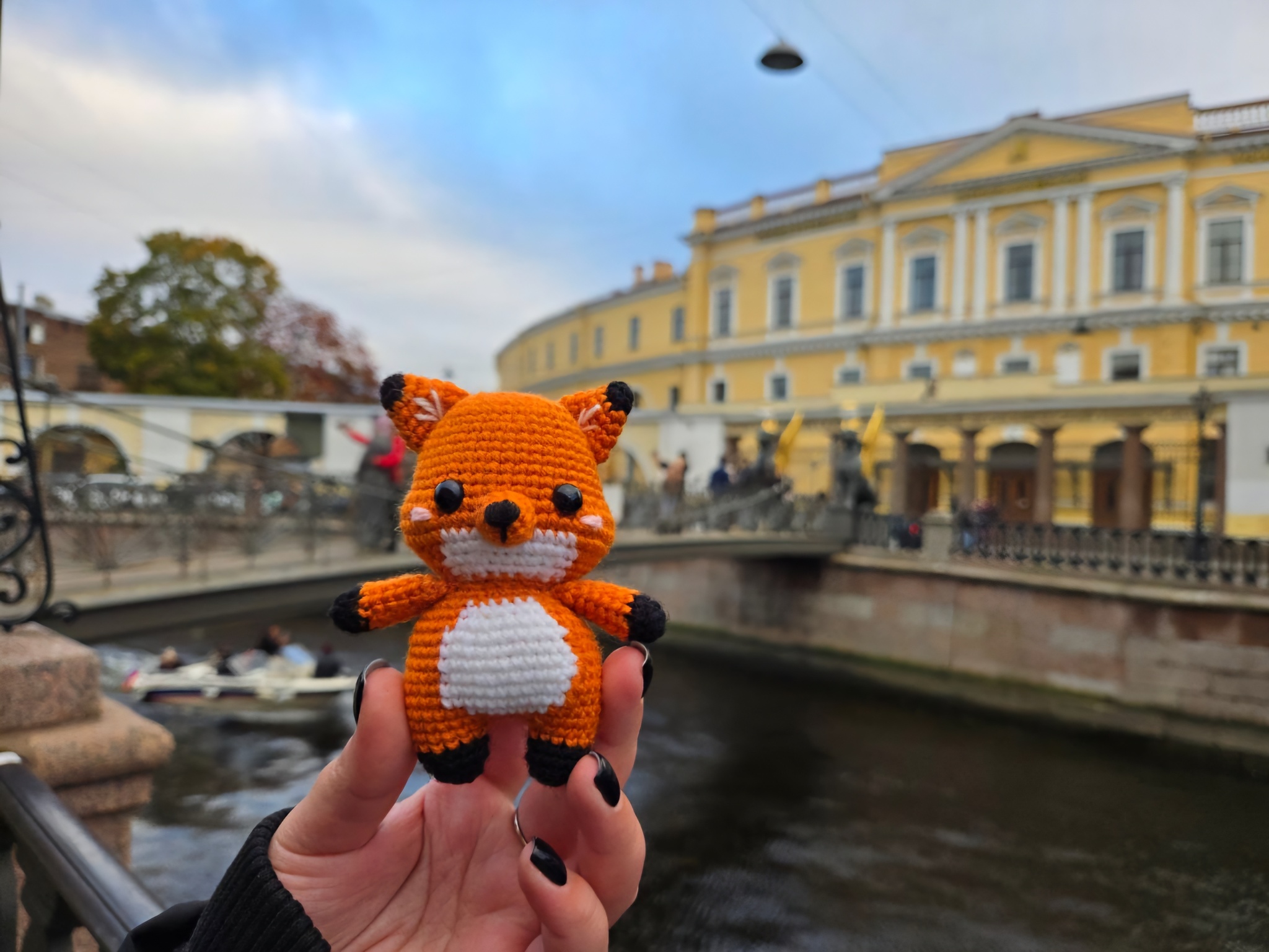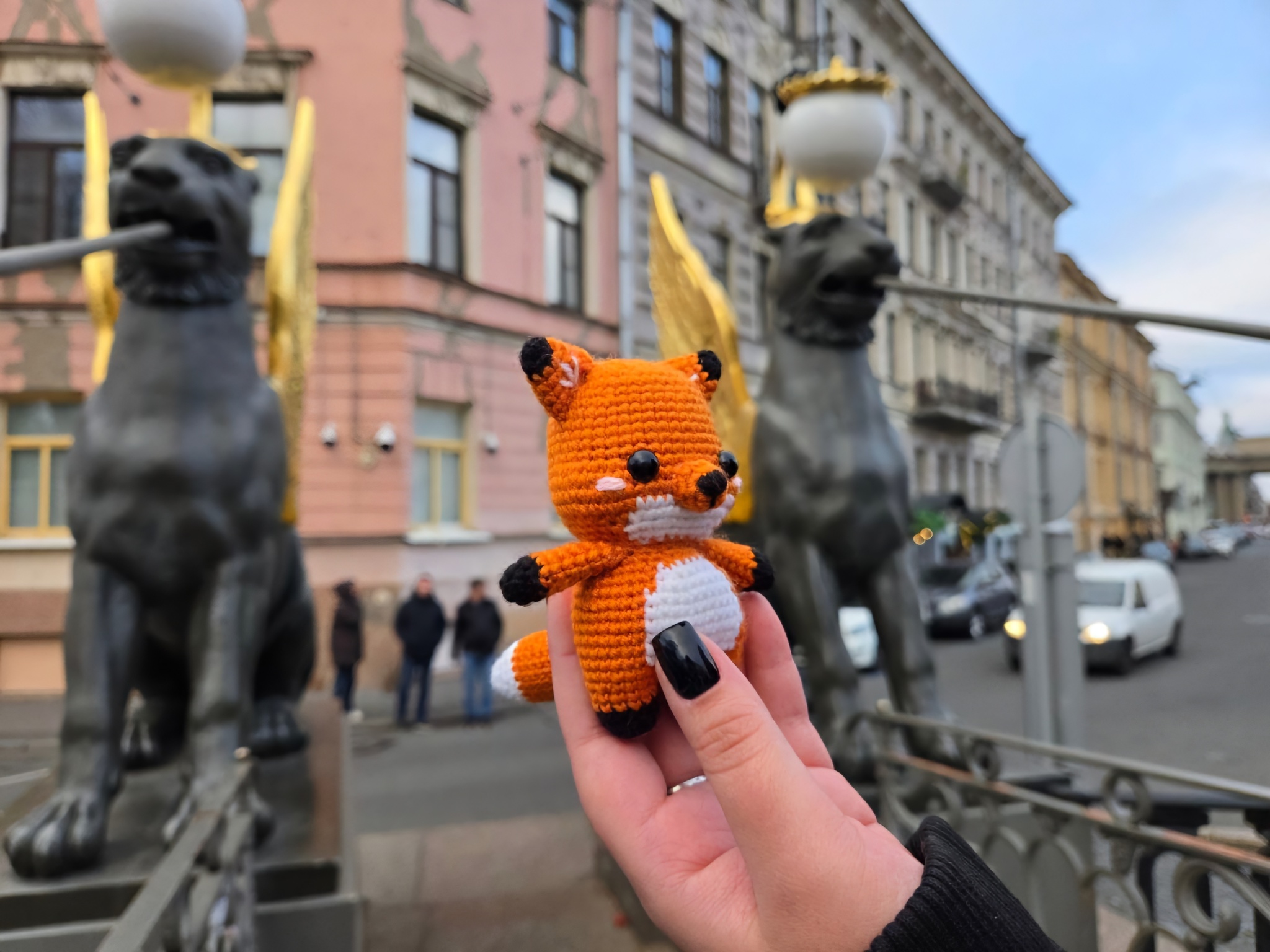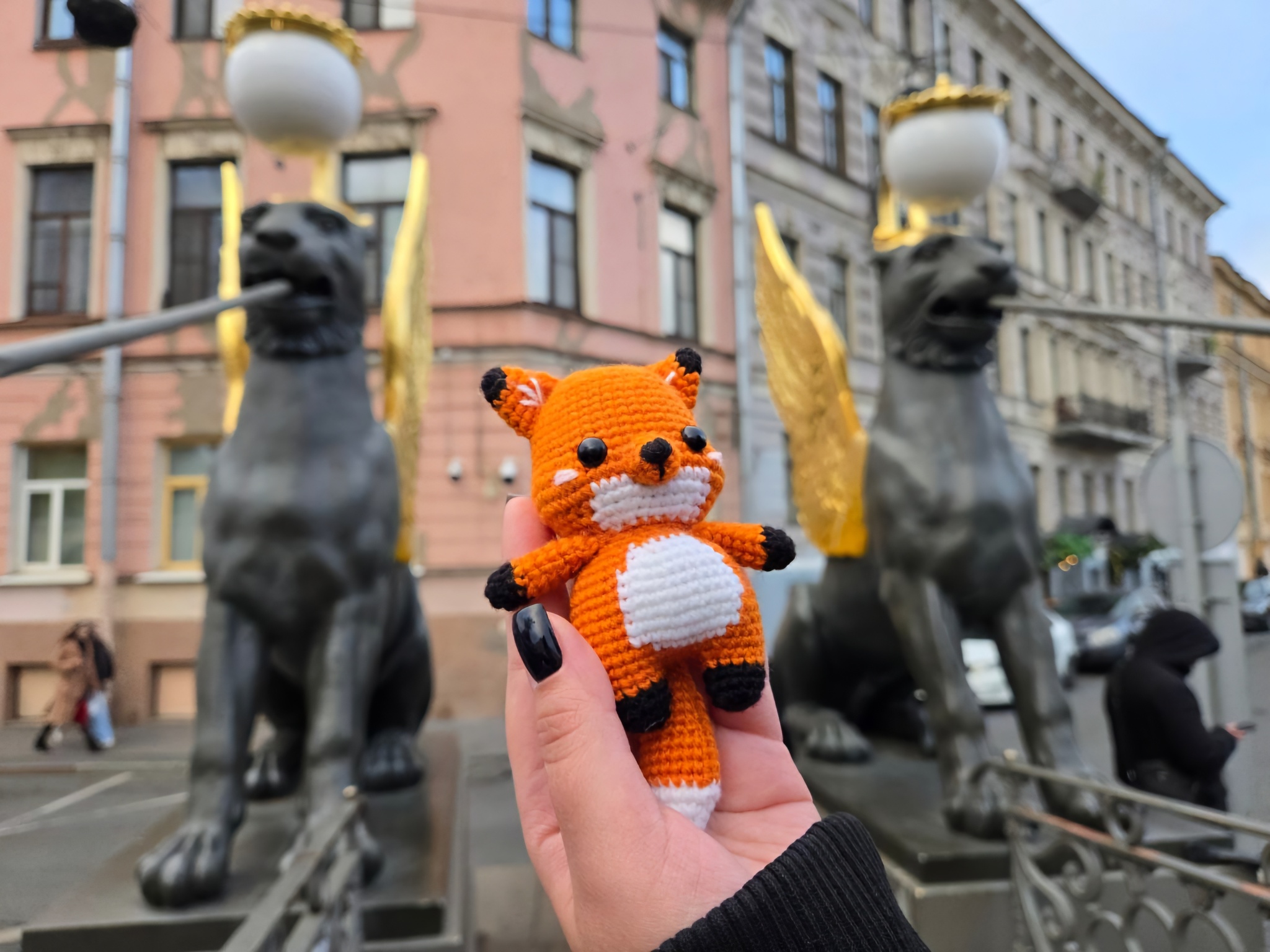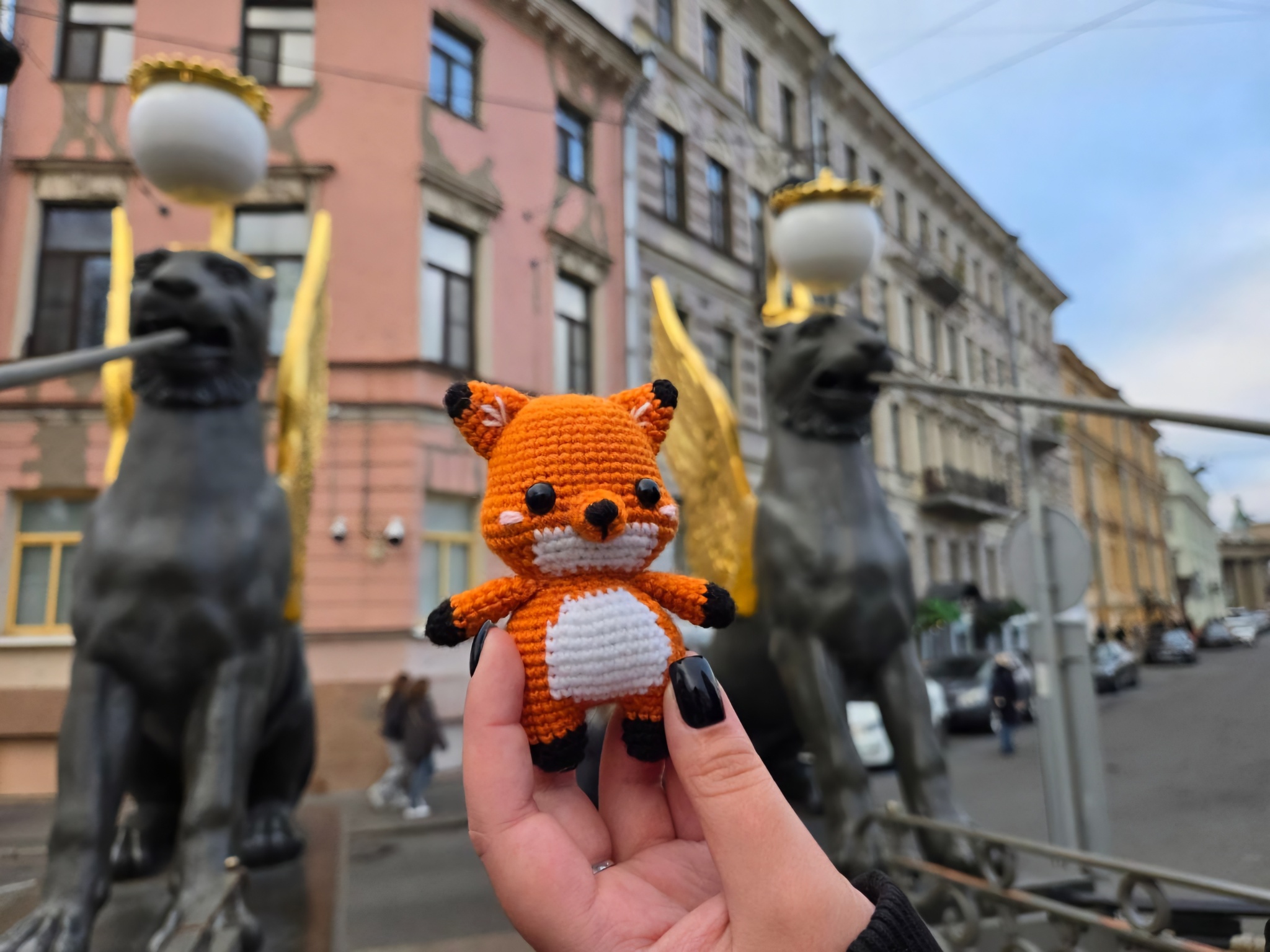 С самого начала мне жутко не нравилось, что получалось (ведь набить изделие я не могла, так как не взяла с собой синтепух). И только по приезде в Москву, собрав это чудо-юдо, я поняла, что этот лисёнок точно удался!