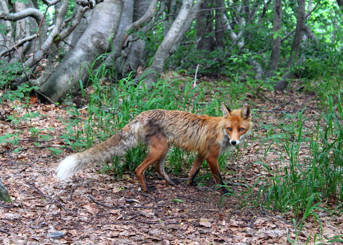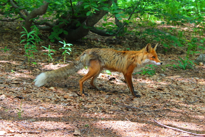 Наконец-то и я встретила свою лису. Встретили воровку в лагере Холодный (район Красной Поляны). Шли по маршруту Бзерпинский карниз - Лагерь Холодный (Кавказский заповедник).
