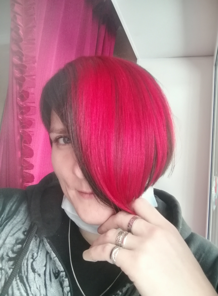 Кстати, Лисичка - это пошло с тех времён, когда я красилась в рыжий цвет) фото не нашла, но наполовину малиновой я тоже была 😁