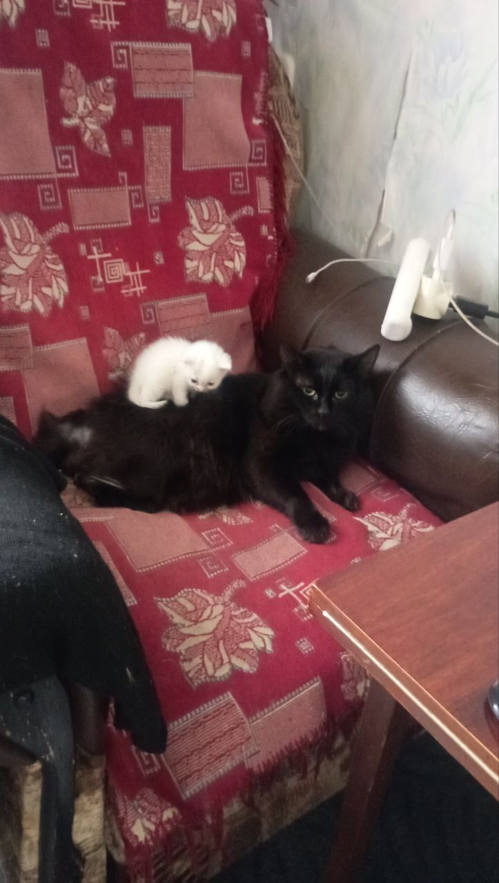 Мы решили выходить котят. Был уже сентябрь, начинало холодать, а они были совсем крошечными. Не ели, не пили. С неделю мы кое-как продержали их дома, а потом отдали тёще. У неё живут два кота, и она окружила котят заботой. К сожалению, один котёнок не выжил. Осталась одна девочка.