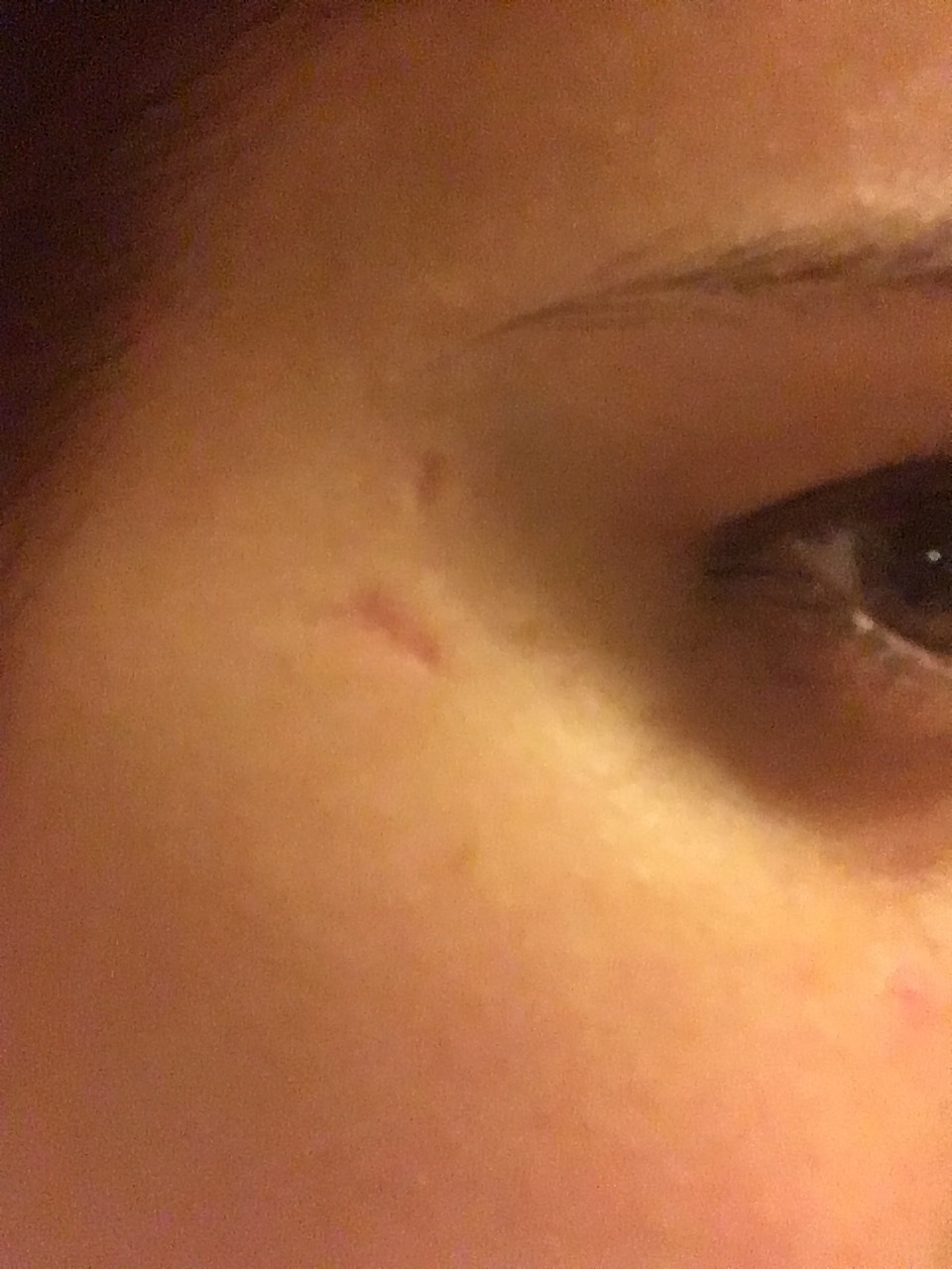 Это было в первых числах мая.Я как раз поехала за младшим лисом к своей подруге(пусть её в этой истории зовут Олей) через весь город,а т.к. погода стояла прекрасная мы решили выгулить её лиса.Мне было поручено взять его в руки,т.к. у Оли были заняты обе руки принадлежностями для шашлыка,при этом было сказано,что за дицо он 100% не кусит.Ну вот взяла я его на руки,пронесла до двери и он резво разворачивается и кусает,а мне всё равно и только побледневшее лицо подруги меня заставило подойти к зеркалу,ну а дальше вы сами всё видете,что я там узрела.