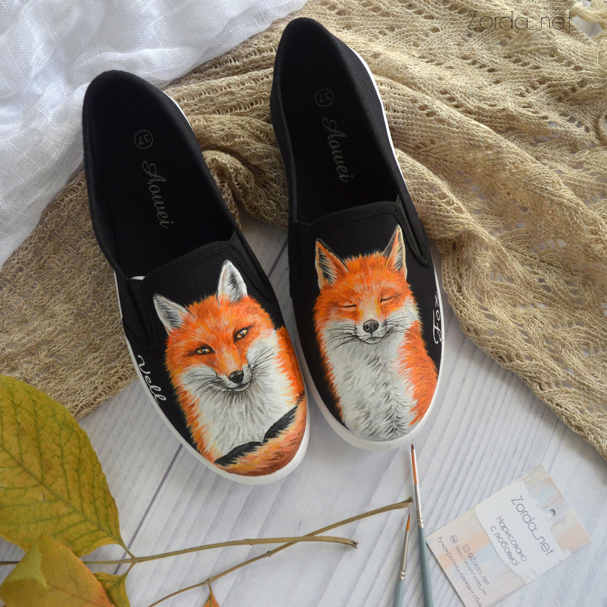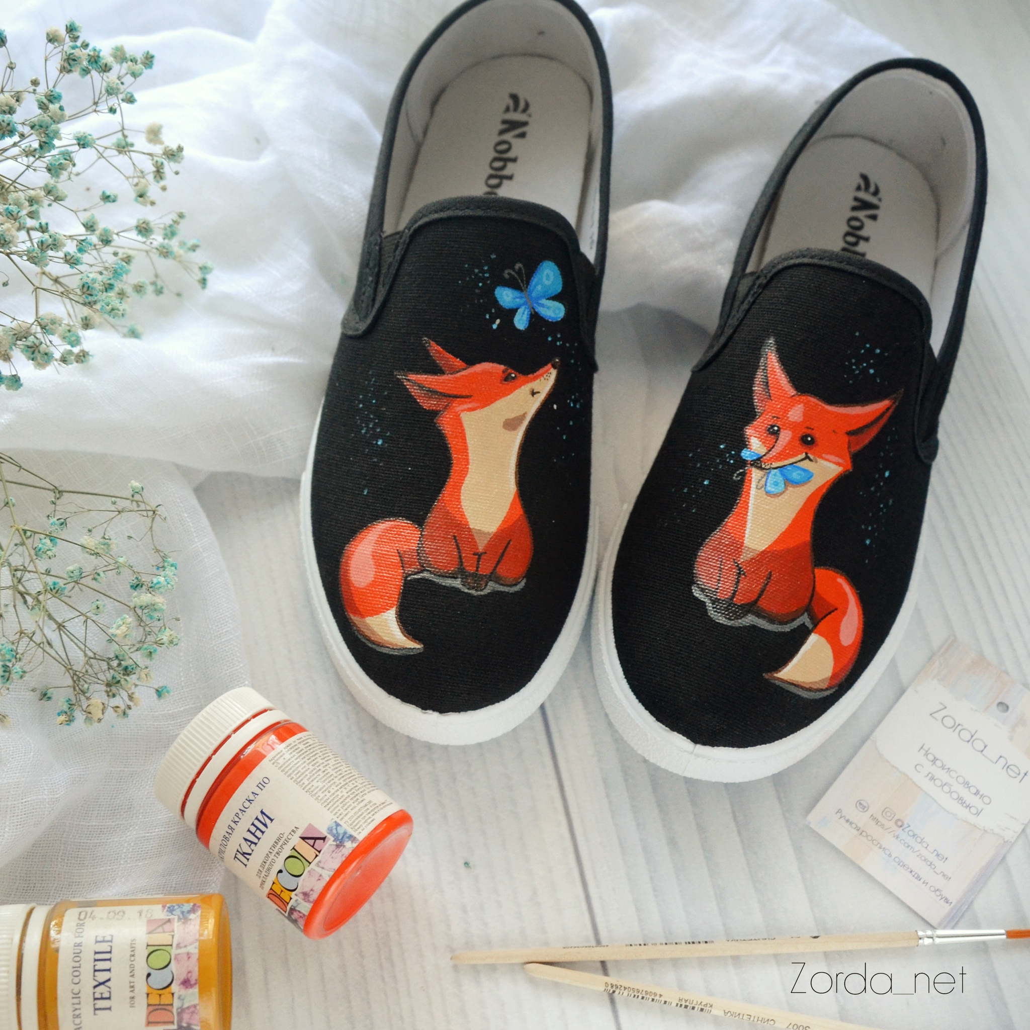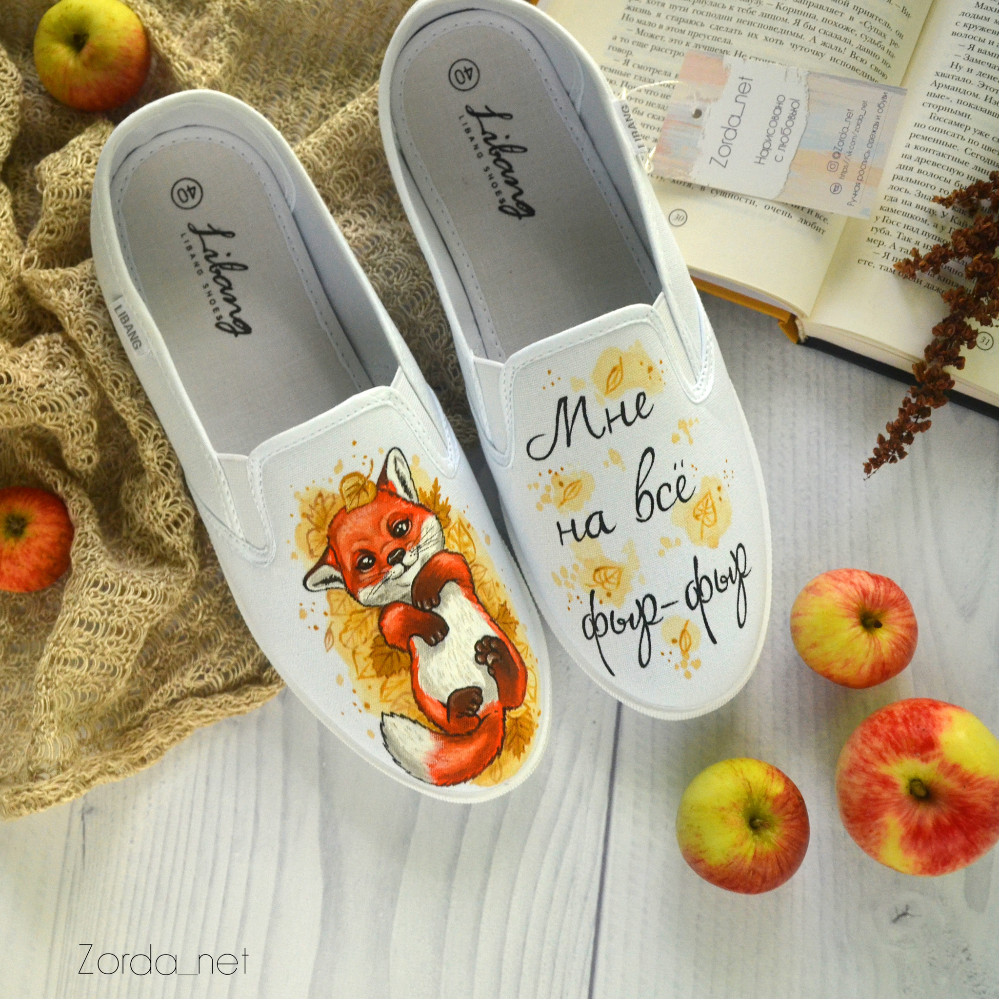 Но лисичек много не бывает, поэтому я рисую их на обуви, на сумках, на рубашках и футболках.