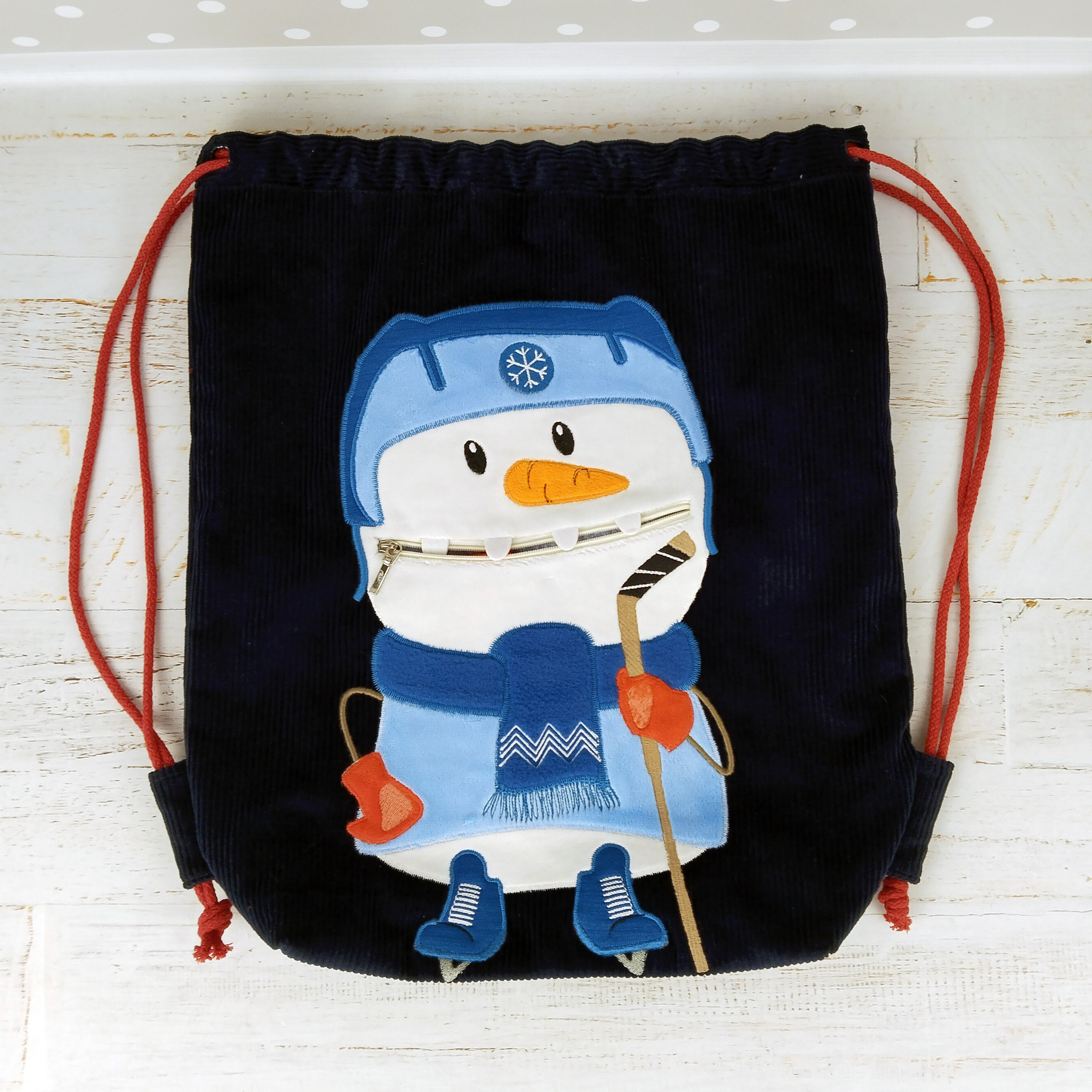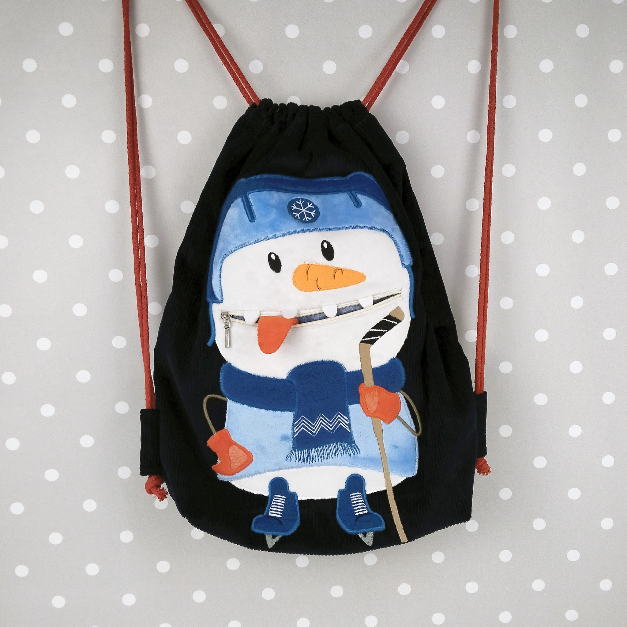 Вторая новинка августа это снеговик-хоккеист. Сшила уже троих таких ребят. Двоих синих и одного красного. Этих вышивать еще дольше! Уж очень много у них деталей.