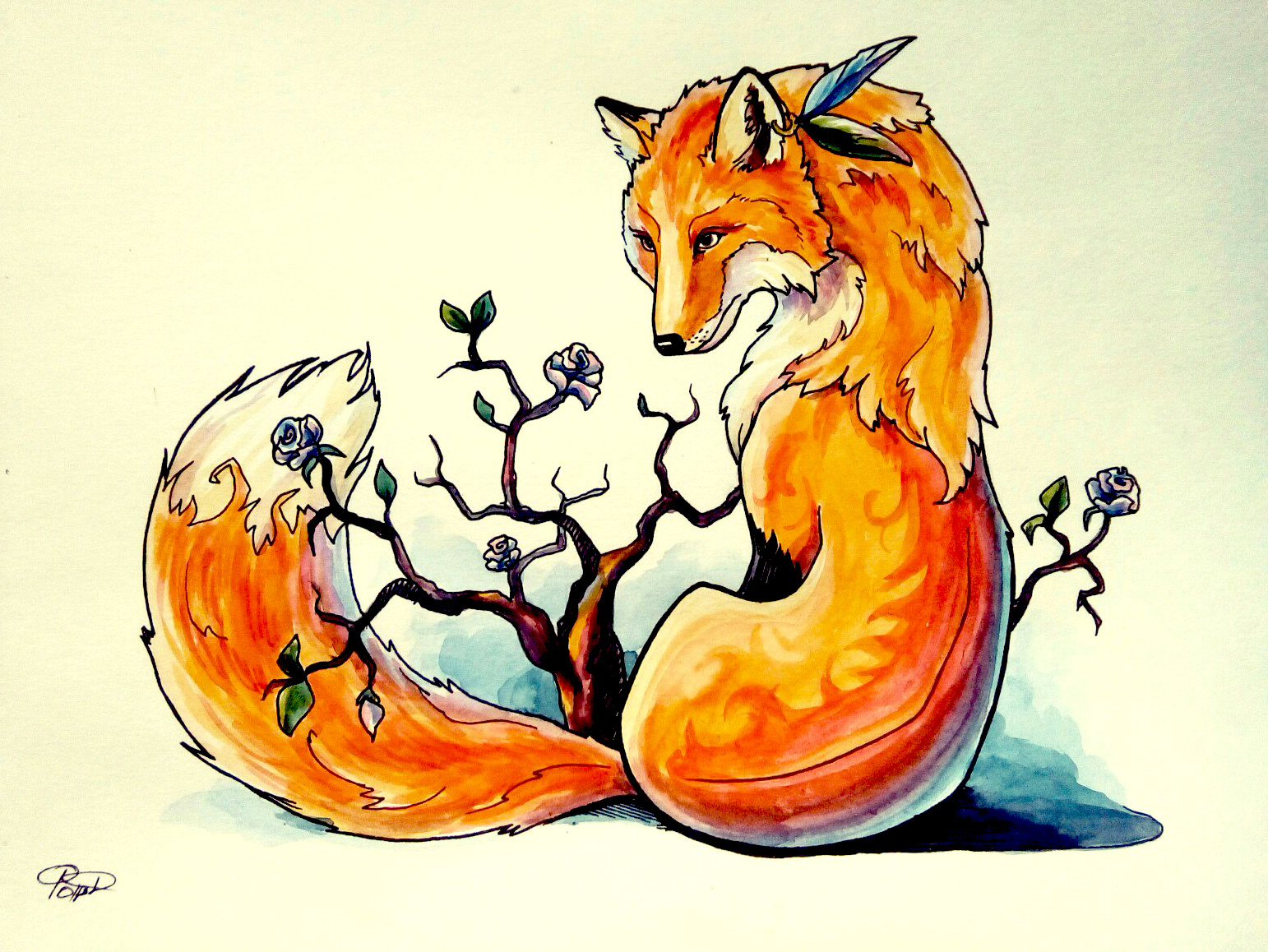 Лисичка. Рисовала эскиз татушки для подруги)