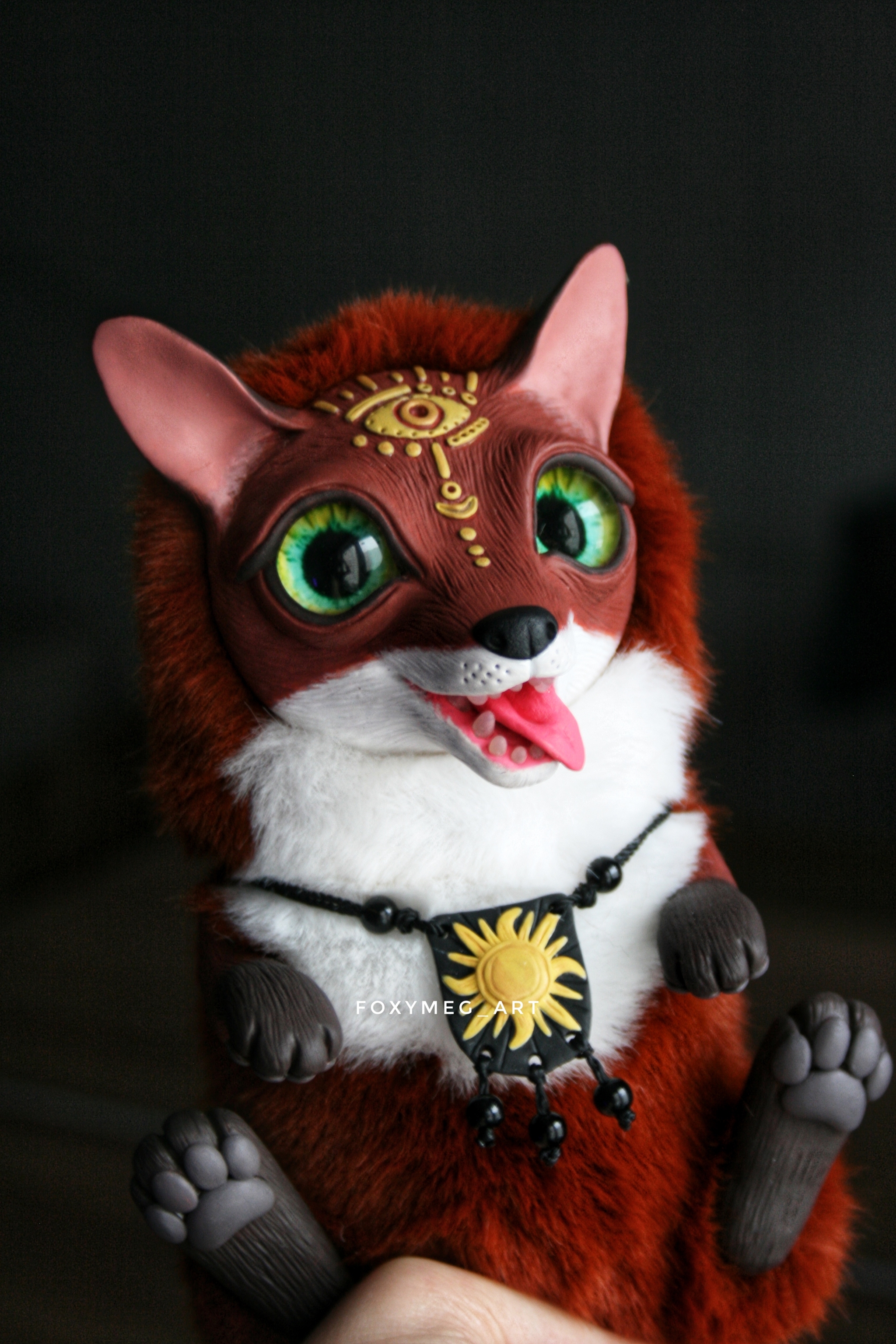 Материалы: полимерная глина, искусственный мех, стеклянные глаза, бусины, акриловая краска и синтепон.