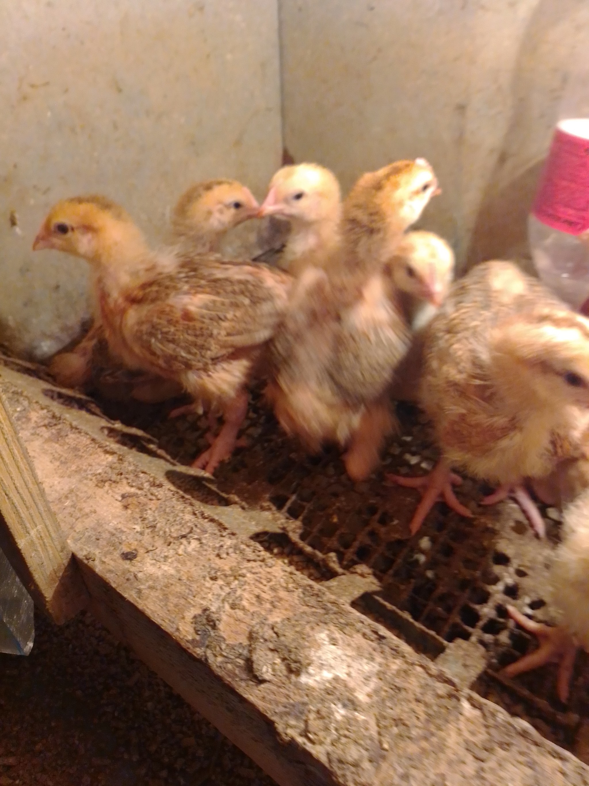 В три недели пришла им пора переезда в большой курятник. До них там тусовались четверо Коббов шести недель от вылупа. Огромные белые дирижабли вели спокойную жизнь, медленно перемещаясь от кормушки к поилке. Неспешно гуляли, спали на бочках, вытянув жёлтые толстые лапищи. И тут открылась дверь и из коробки вместо новых вкусняшек посыпались мелкие взъерошенные рыжие тварюшки. Белые сразу стали качать права, ибо они тут старожилы и нефиг из их кормушки есть, из их поилок пить. Загрустили Фоксики. Ровно на сутки. А с утра следующего дня с криком "Банзай! Не догонишь, жиробасина!", отжали своё место у пищеблока. Освоившись, опять обратили своё внимание на человека.