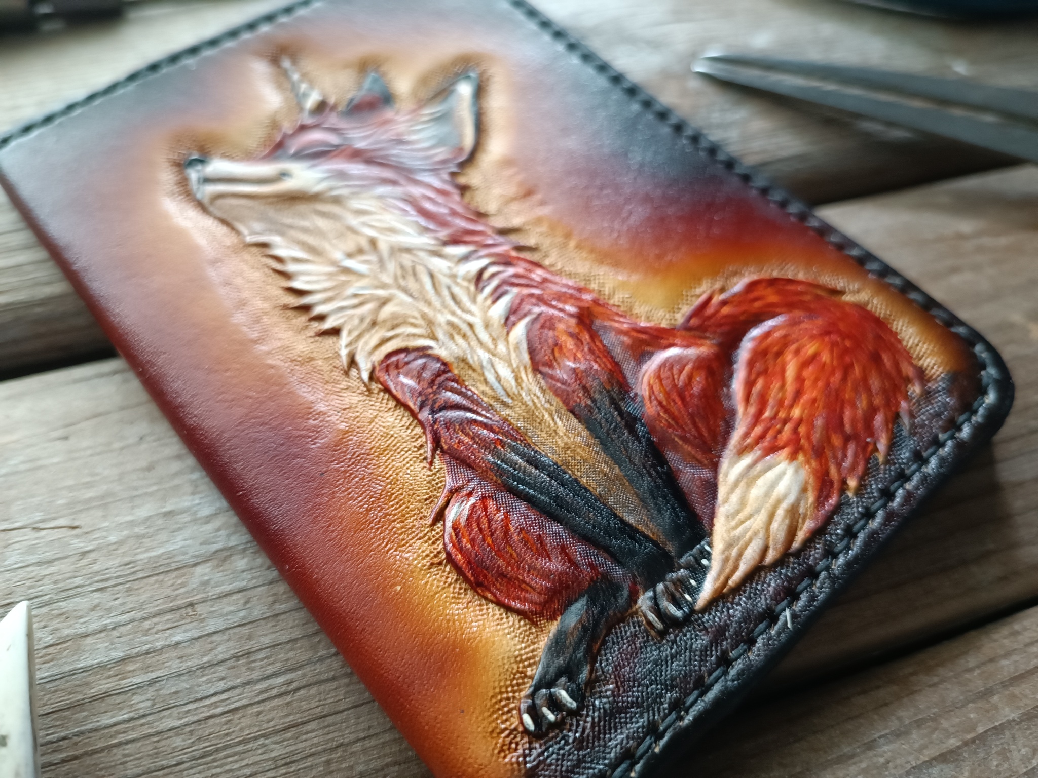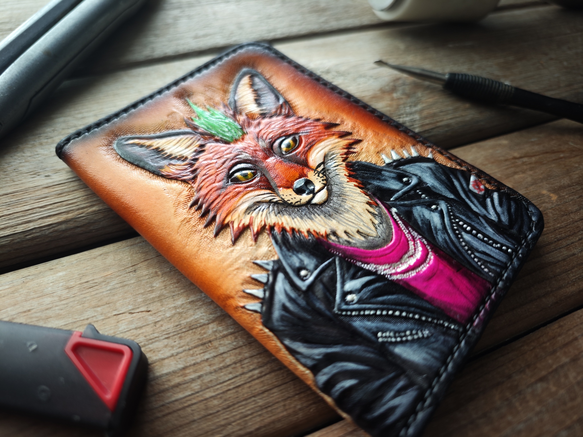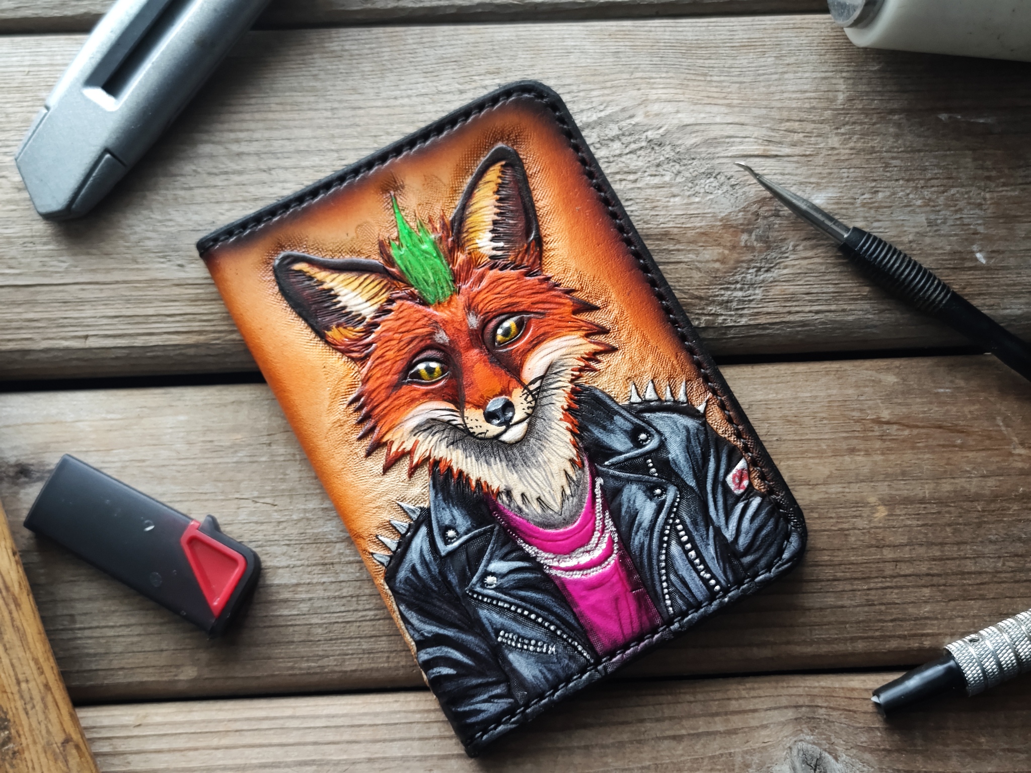 Сделал серию обложек для паспорта с лисами. Кожа растительного дубления, тиснение, покраска спиртовыми проникающими и акриловыми красками. Приятного просмотра!