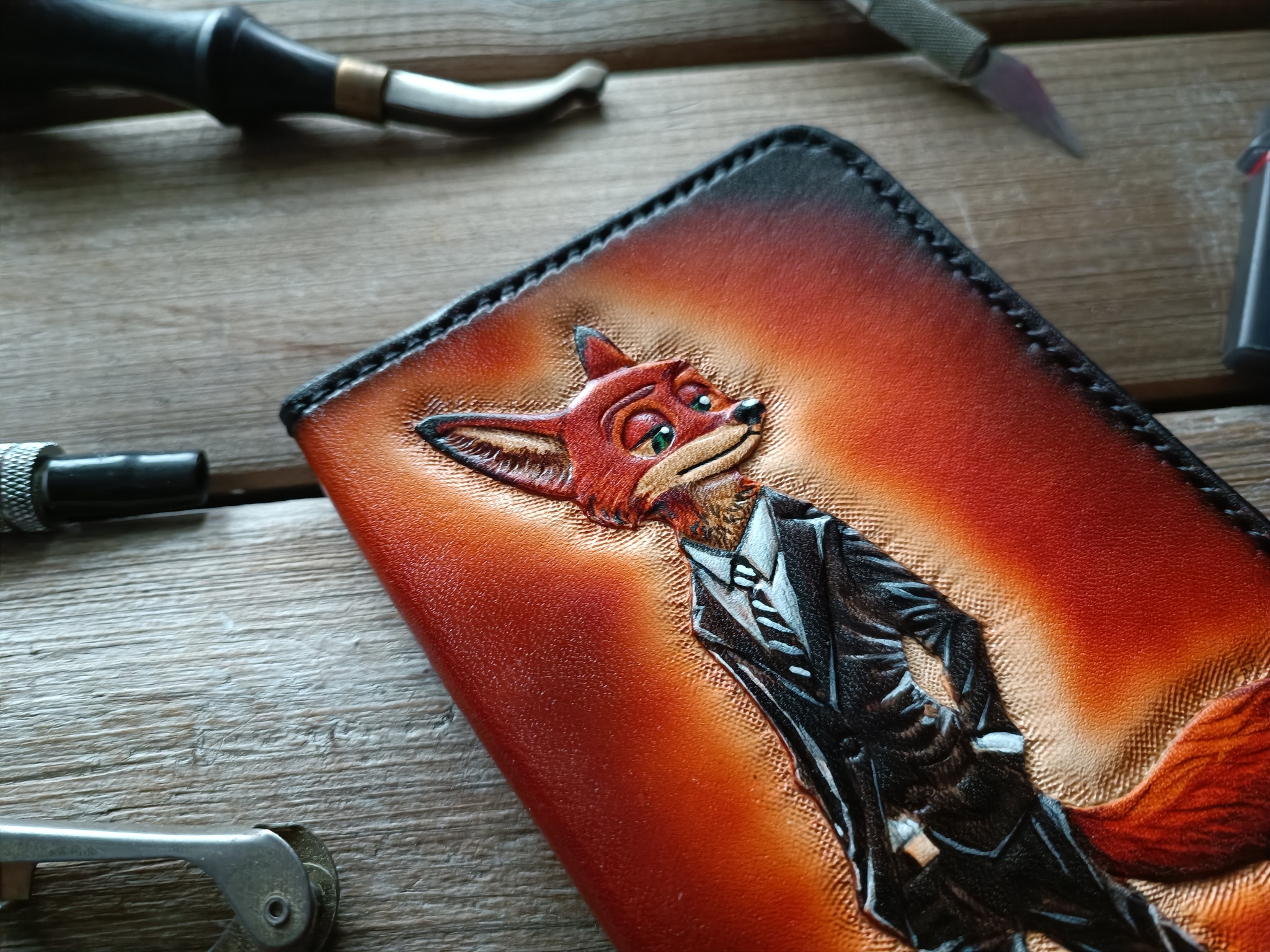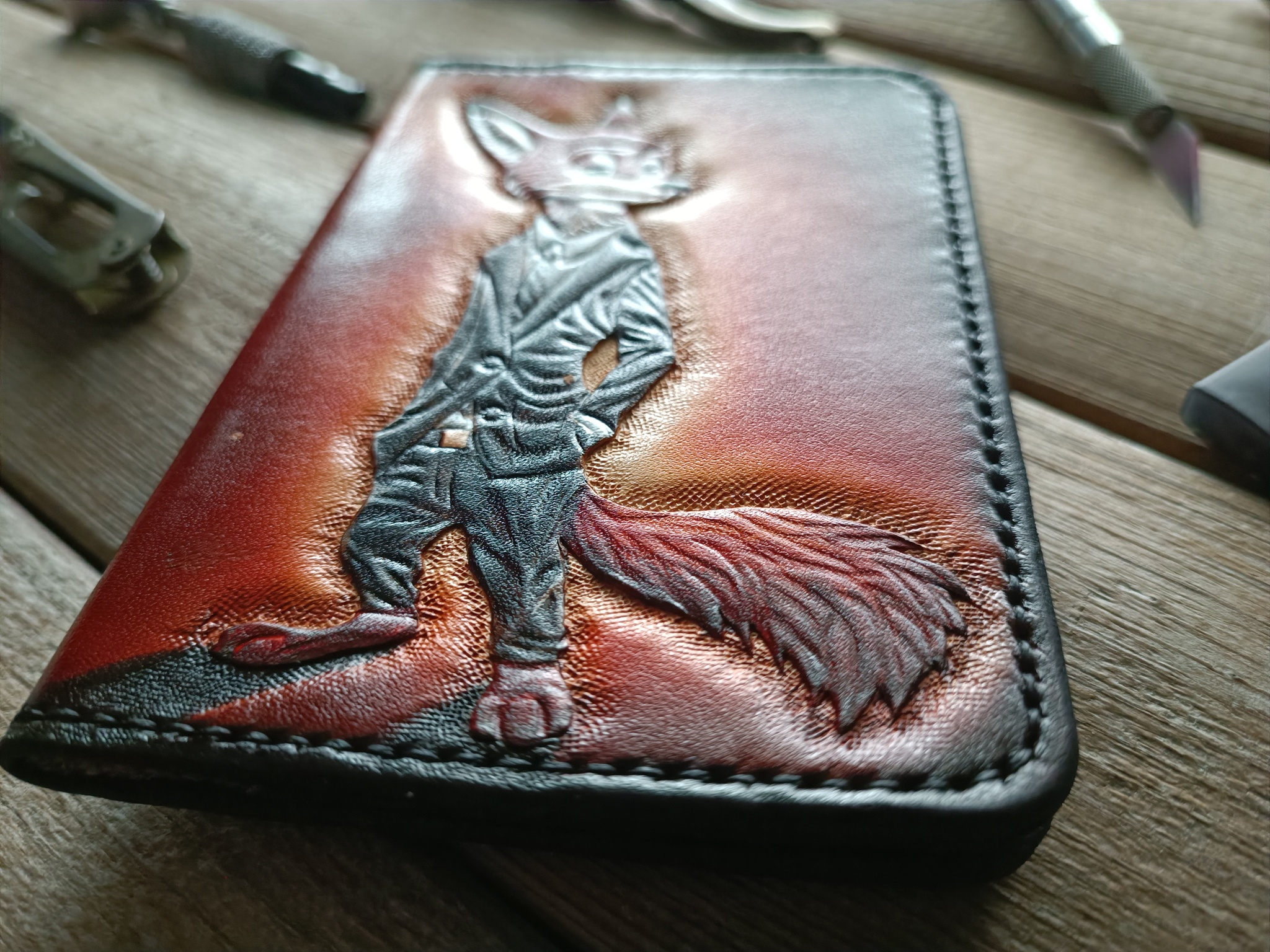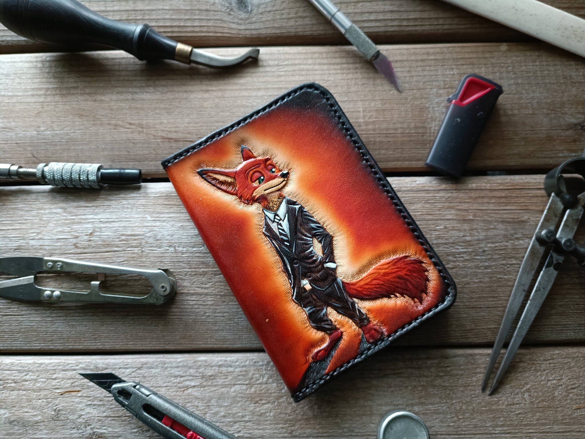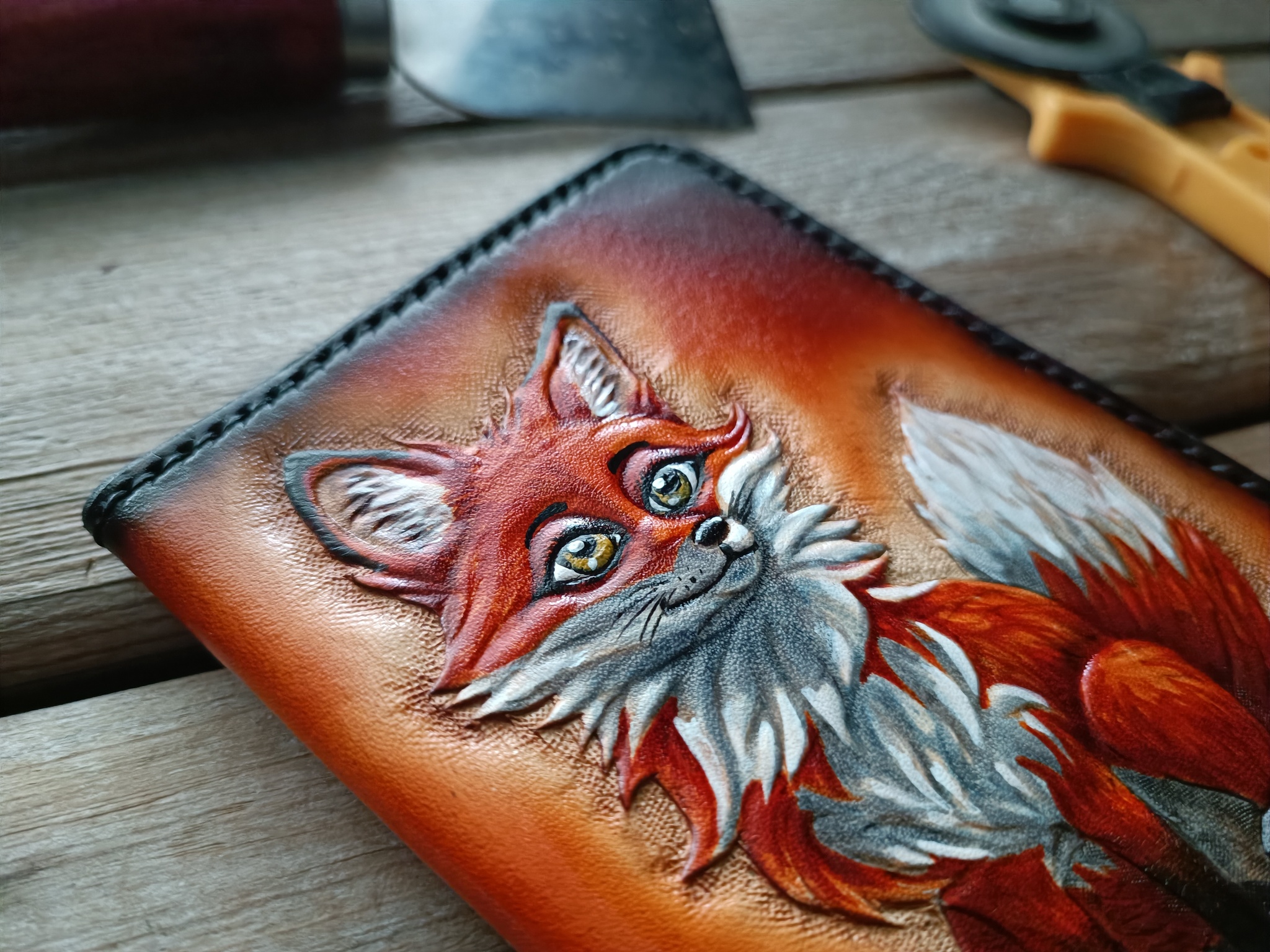 Сделал серию обложек для паспорта с лисами. Кожа растительного дубления, тиснение, покраска спиртовыми проникающими и акриловыми красками. Приятного просмотра!