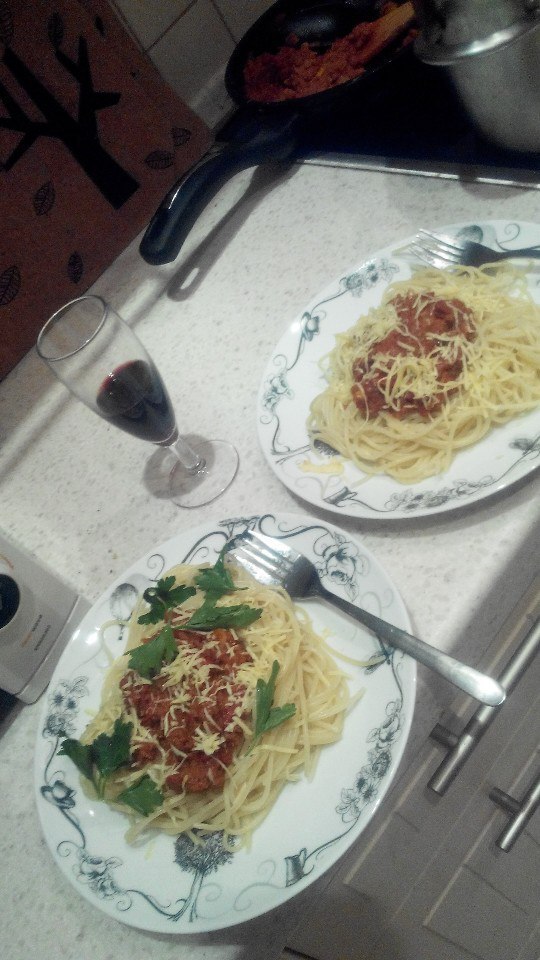 Пересмотрев отрывок из фильма я увидел эту пасту яркой ,эмоциональной, пахнущей чесноком, томатами и вином, пышущей энергией и силой. Если конечно позволительно так высказываться о спагетти с соусом.