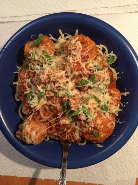- выложить на горячие спагетти соус. Присыпать петрушкой и черным перцем.
