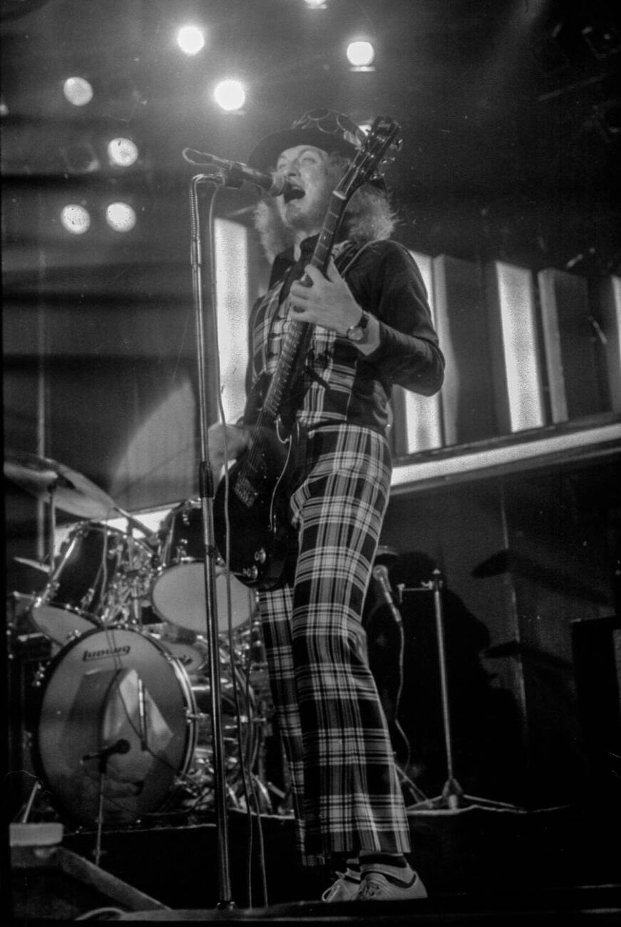 Элтон Джон делает вид, что читает голландский журнал Muziek Expres, 1971.