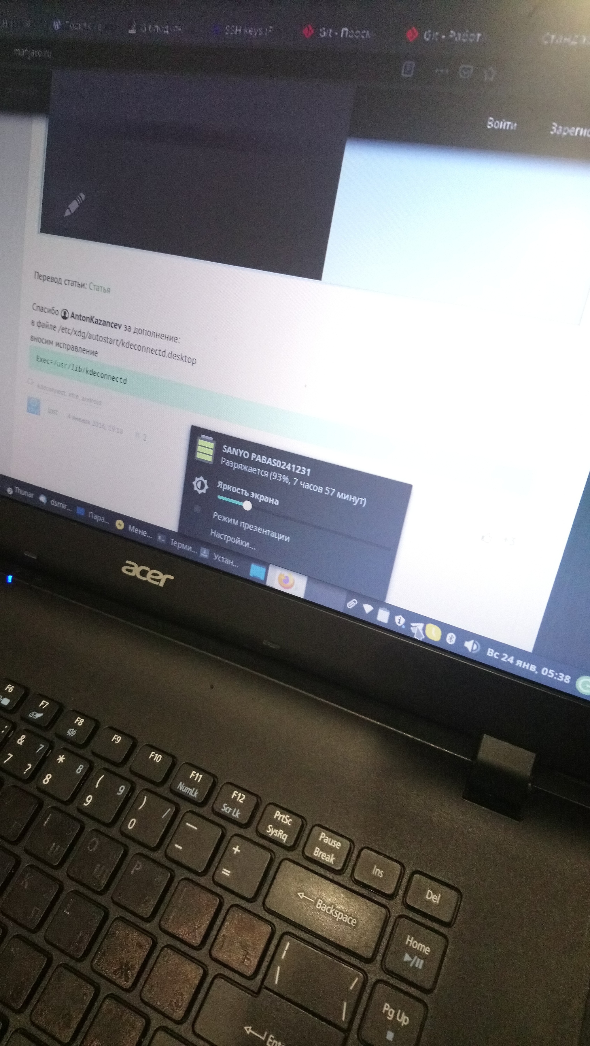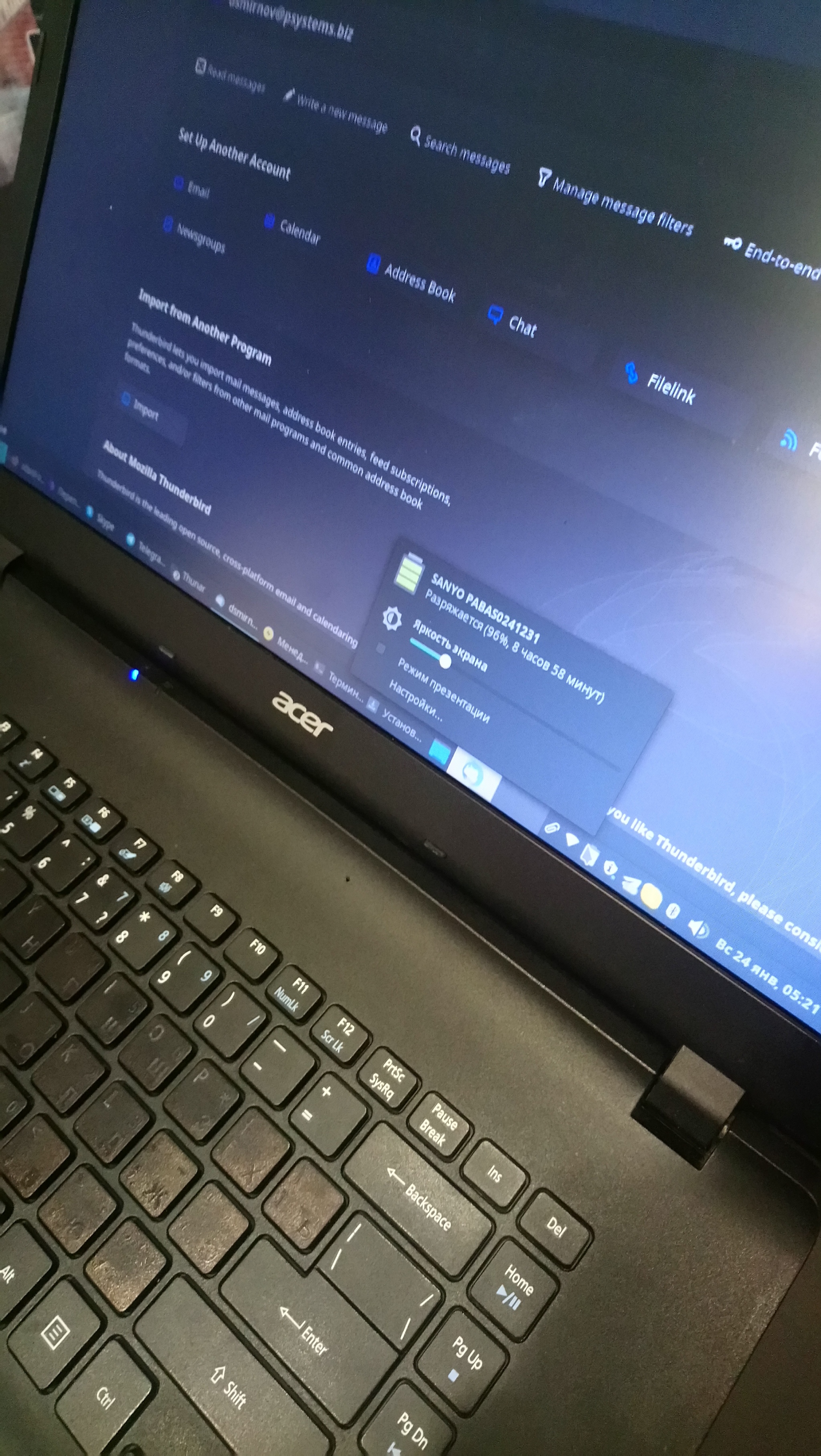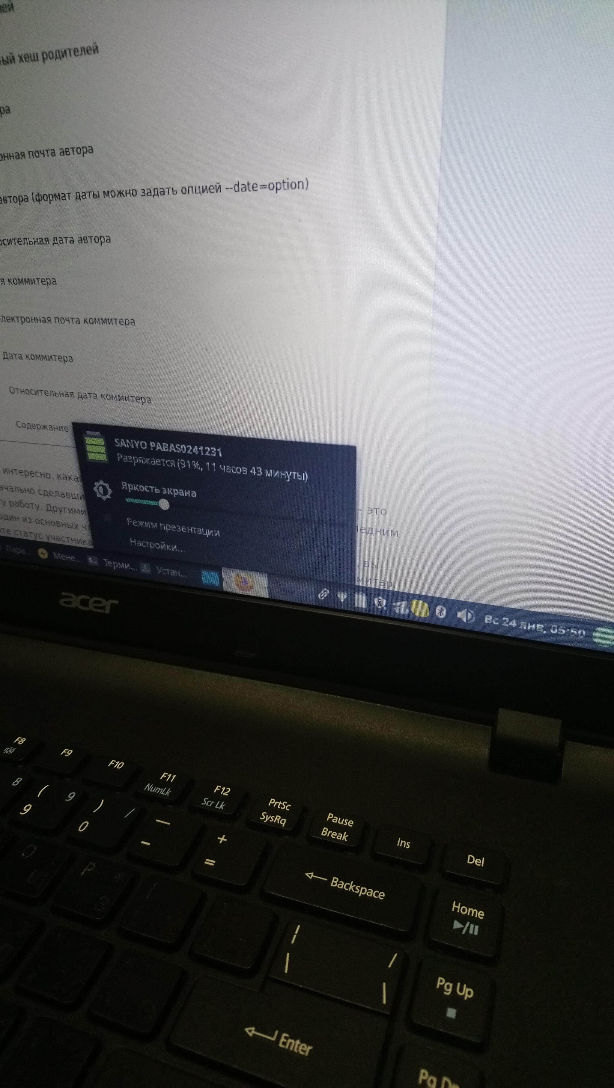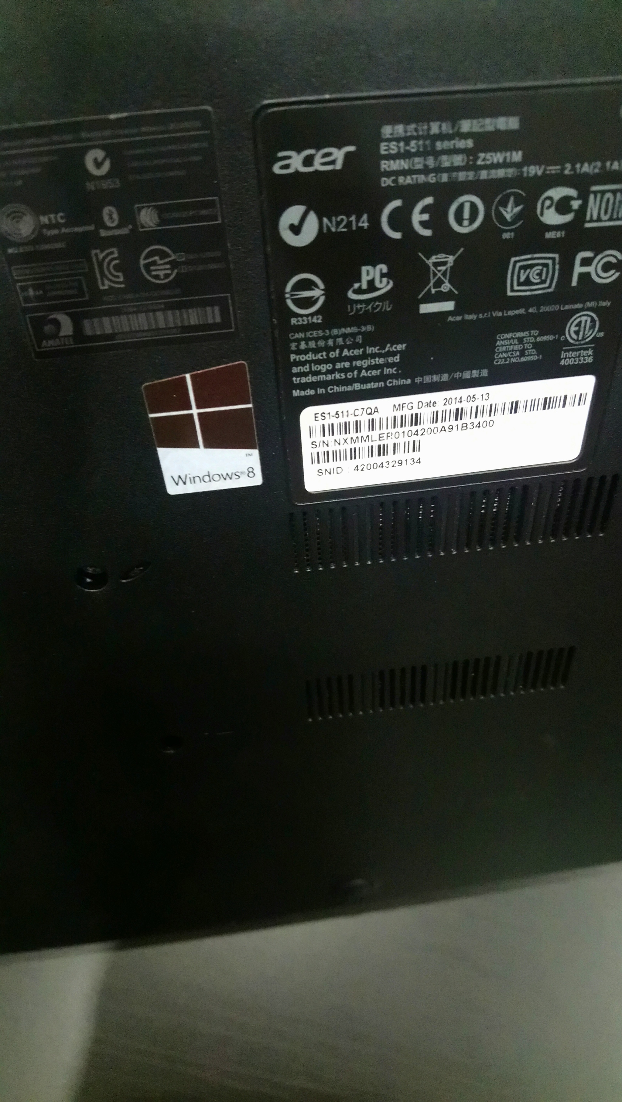 Ноут эйсер, на дне присутствует отверстие под зубочистку для экстренного отсоединения аккумулятора.