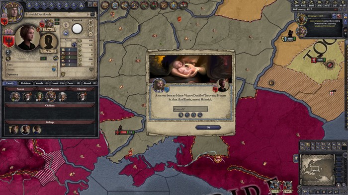 Тем временем, 16 февраля 1217 года в нашем роду случилось новое, весьма важное прибавление. Младшая сестра Никифора и, по совместительству, казначей империи, царевна Валентина (lo_skut_ik) вдруг взяла и совершенно внезапно родила гениального сына, коего я нарёк Конрадом в честь (KonradZ).