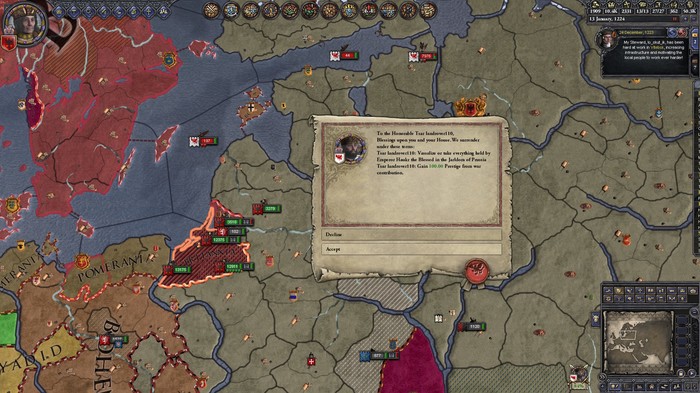 В итоге, чтобы объявить войну за всё герцогство, мне пришлось учредить титул де-юре великого княжества Литовского, в чьи границы попадала Пруссия.
