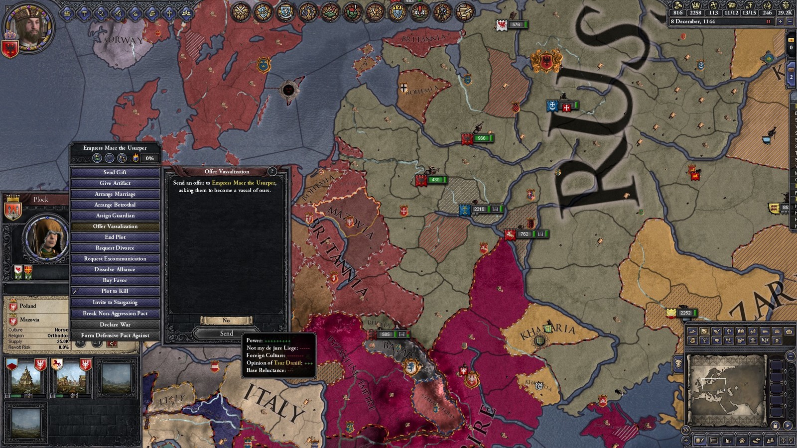 К концу года пали ещё две польские провинции, а «гордые рейдеры» были перехвачены и истреблены дружинами вассалов. Счётчик дотикал до 100%. Всё было кончено, и Мазовия стала…
