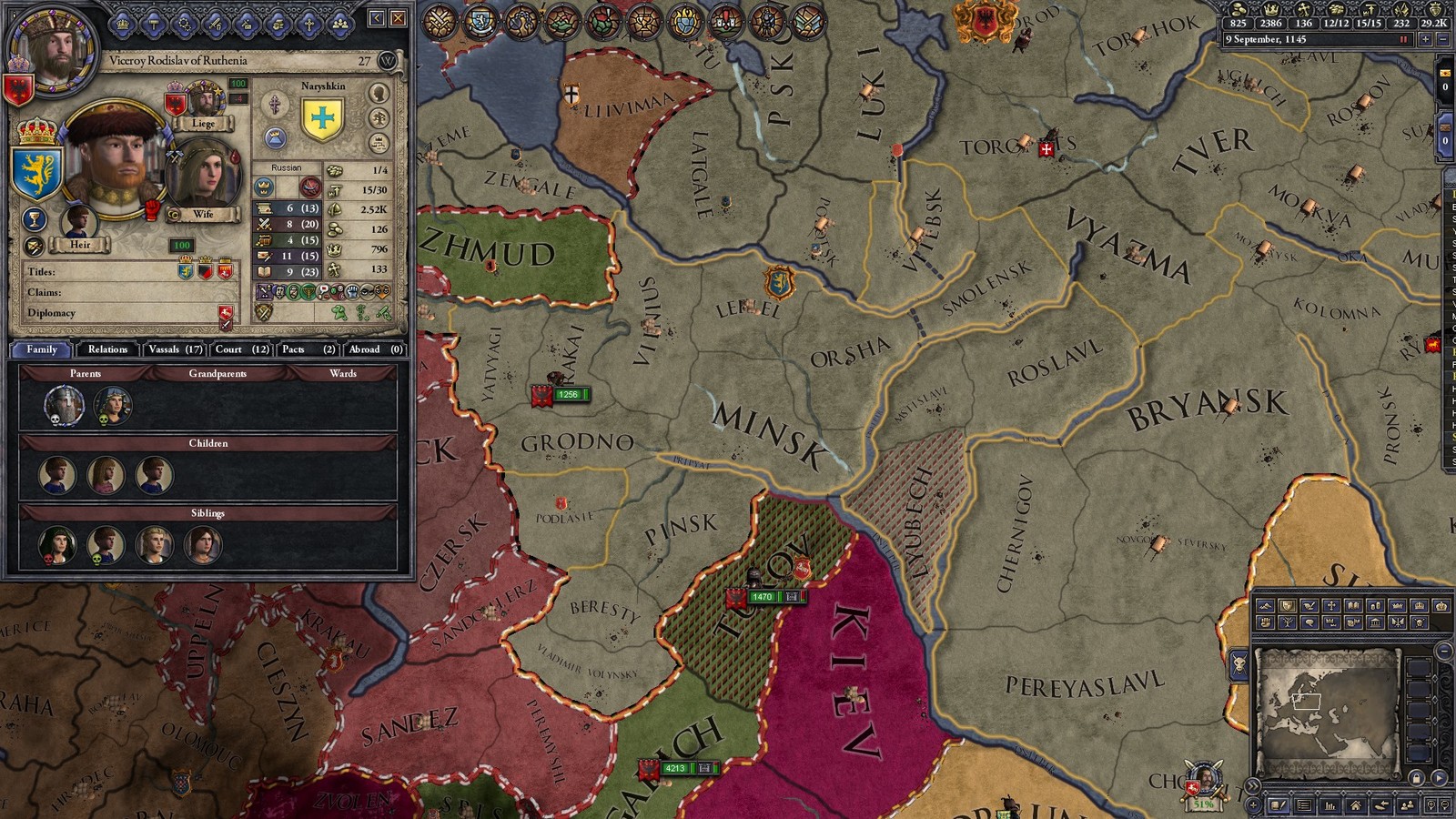Известие с одной стороны трагическое, Юстиана, при всём своем буйном характере, внесла немалый вклад в становление Империи. Не только родила нам гения, но ещё и захватила Пярну, Полесье и провинцию Лаанема в Прибалтике. Ну, а то, что она несколько наших родственников благополучно отправила на тот свет раньше срока, то простительно. Порода «чище» будет. С другой же стороны, смерть матери позволила Даниле-Каинскому присоединить Псков к личному домену. Лимит владений аккурат позволил добавить новую провинцию. Однако, помимо города, под рукой покойной маменьки находилось 10 вассалов, и вот они уже в лимит не вписывались никак.