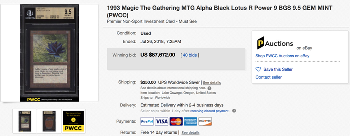 Одна из редчайших карт ККИ Magic: The Gathering Черный Лотос была продана на аукционе за $87,672.