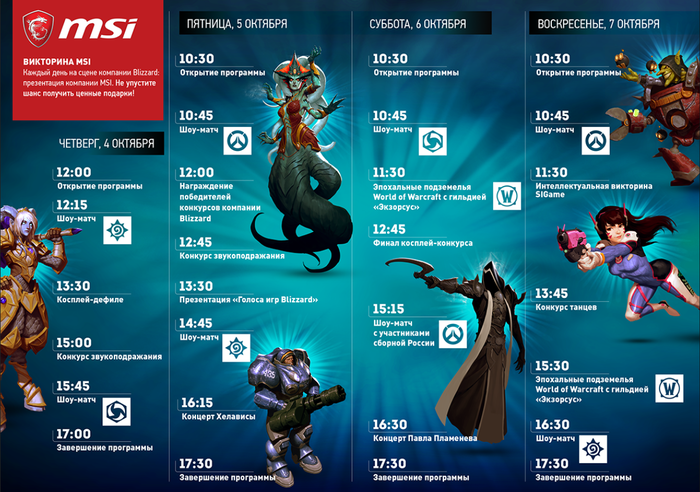 Компания Blizzard посетит выставку ИгроМир, а значит посетителей ждут множество конкурсов и подарков. Чтобы фанаты были готовы, Blizzard опубликовали расписание мероприятий в официальной группе в ВК.
