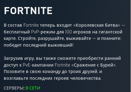 Я кстати так и не понял, фортнайт уже релизнулся или нет? На сайте нет "купить игру" есть только "набор основателя" со свистелкоперделками.