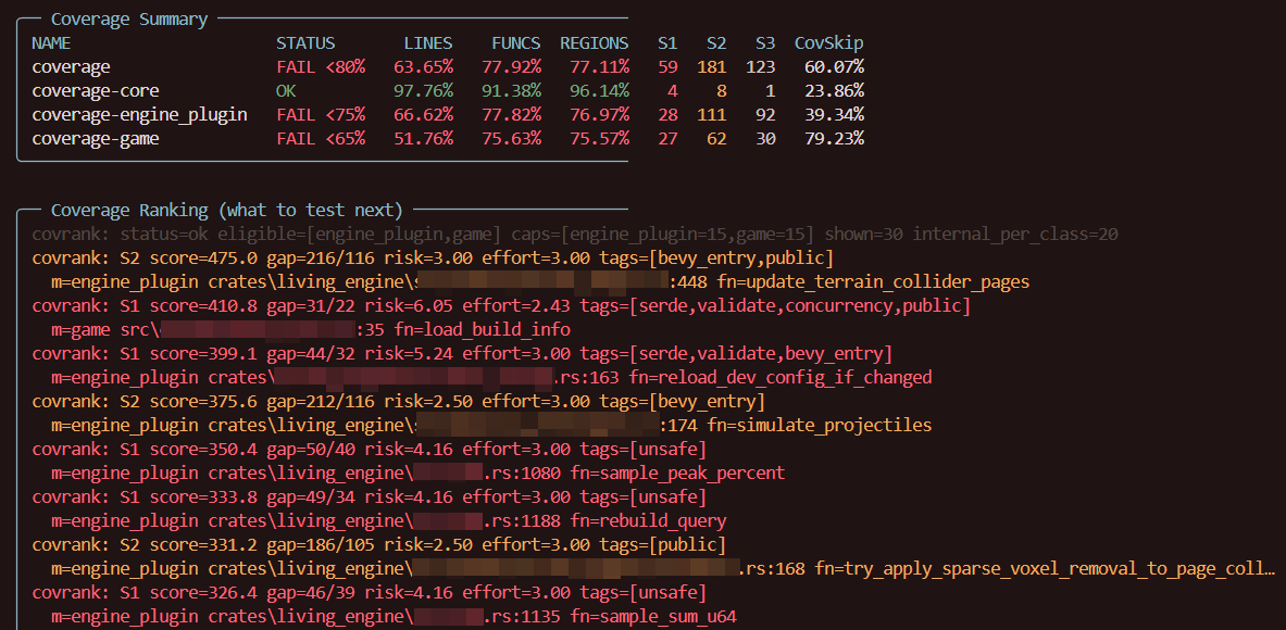 Алгоритм ранжирования: Реализована утилита в составе локальной CI, которая анализирует исходный код и ранжирует дыры в покрытии.