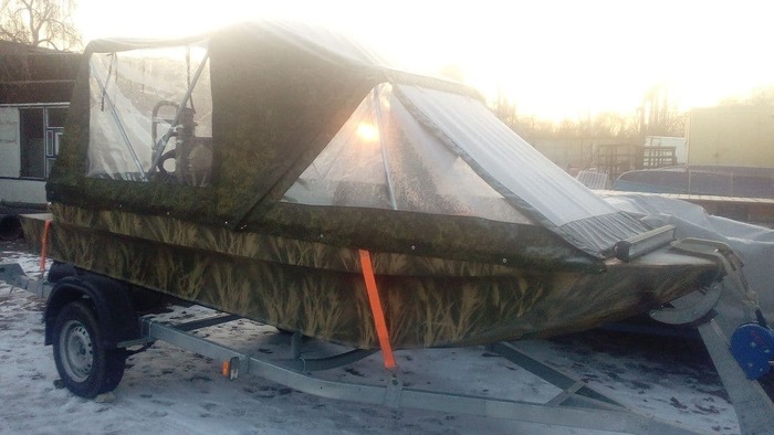 Летом изготовили аналог американской лодки Havoc 4,6 м, по заказу общего друга. Совсем не давно он привез на доработку (усиление бортов, переделка прицепа). Сам клиент добавил несколько элементов и лодка уже выглядит абсолютно по другому. Чехол и элемент декора, света придают наполненность и красивый вид лодке.