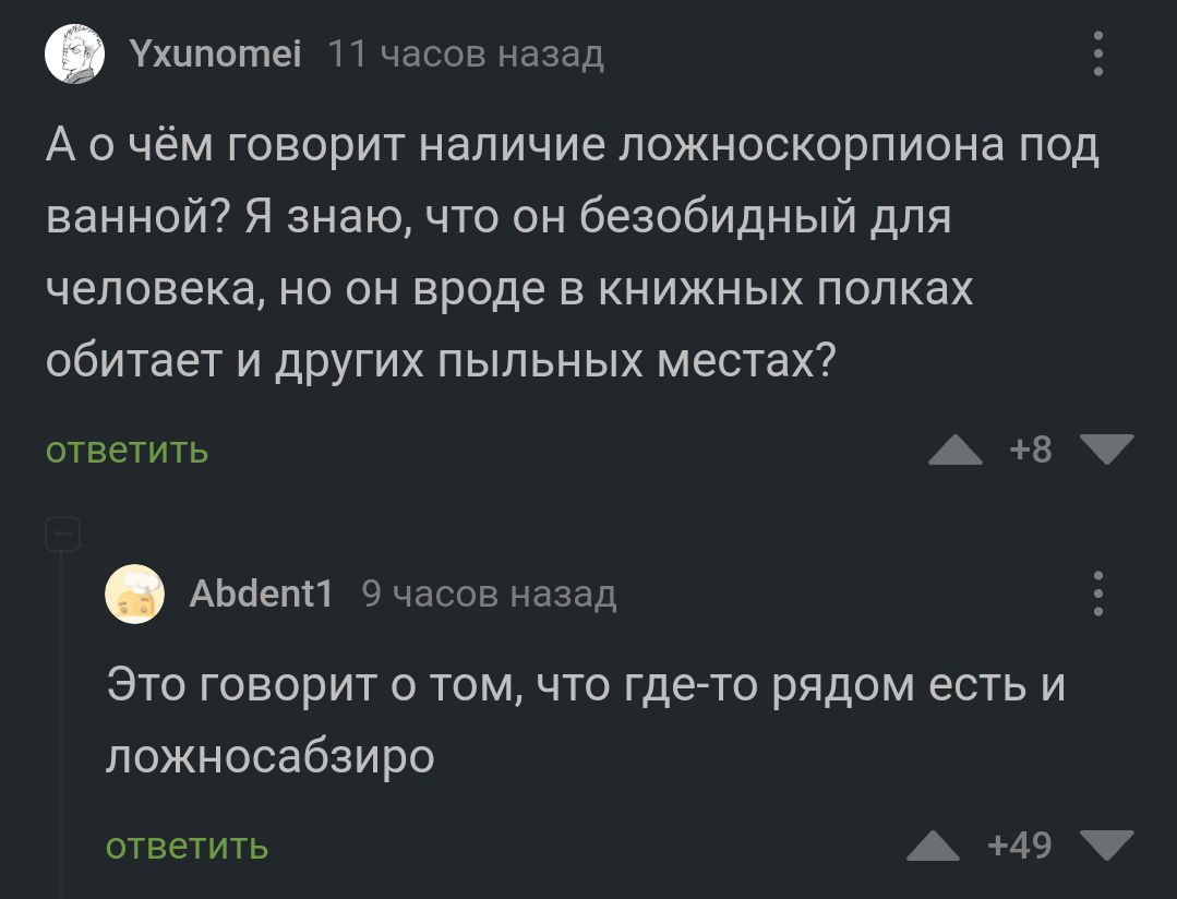 4423 Аноним Логично 2 года назад #comment_260773262 Юмор Комментарии на Пикабу Саб-зиро Забавное Скриншот Паукообразные Ложноскорпион 39 3 Ещё 0