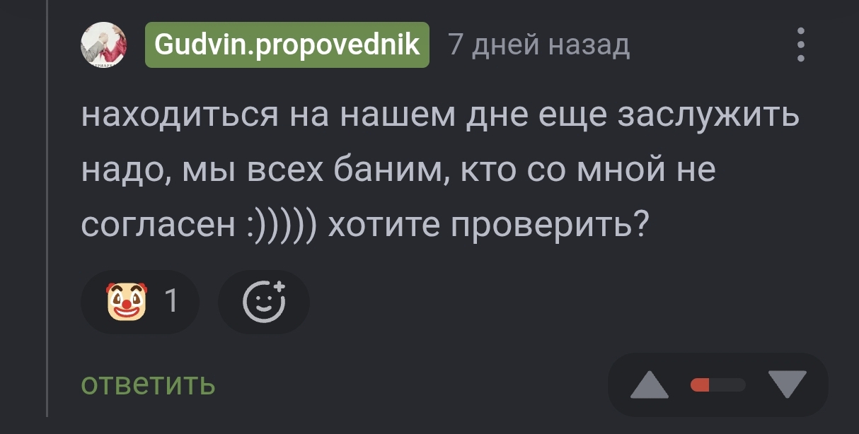 Один из тех моментов, когда владелец сообщества устал прикрываться "созданием атмосферы", раздавая баны за неугодное мнение.