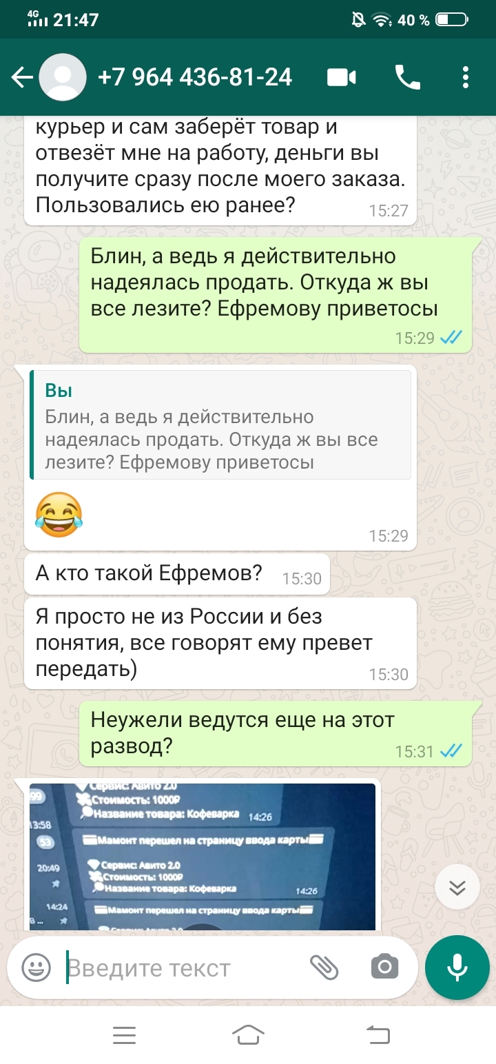Сегодня имела удовольствие пообщаться с очередным мошенником на всем известном сайте с объявлениями. Весьма занятно