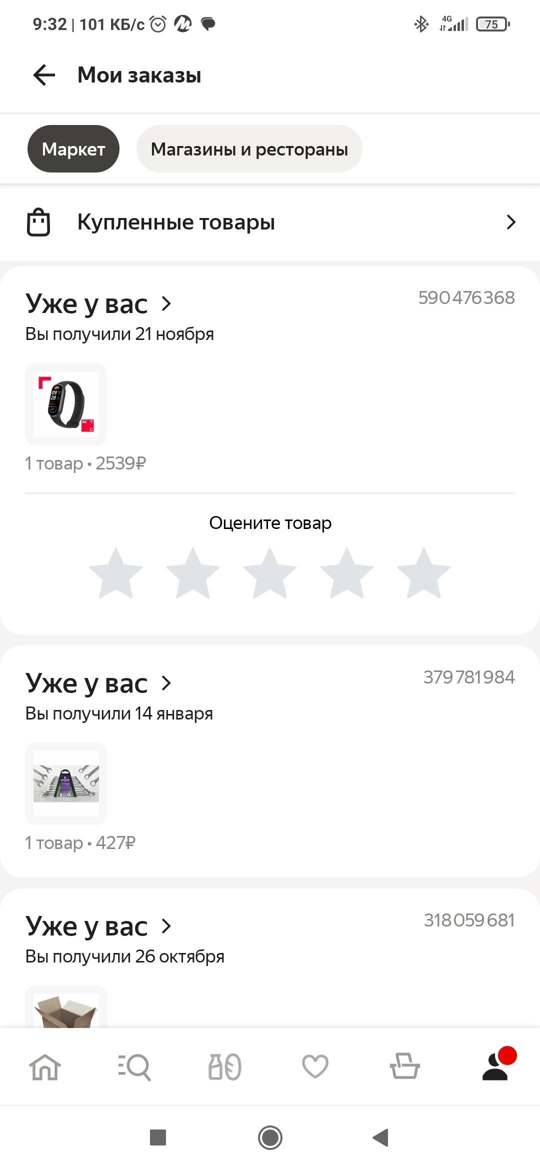 Добрался до телефона Жены, она на маркета чаще покупает, чем я