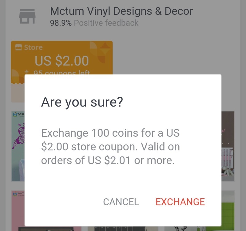 Меняем 100 монет на купон, который можно задействовать при покупке стоимостью от двух долларов.
