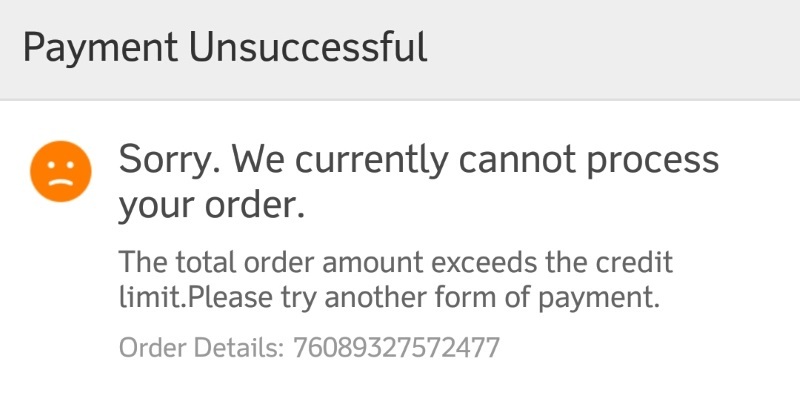 «Общая стоимость заказа превышает кредитный лимит»? То есть, суммы на карте не хватает для оплаты заказа?? Как так??? Нажимаем на «Other Payment Methods» и офигеваем…