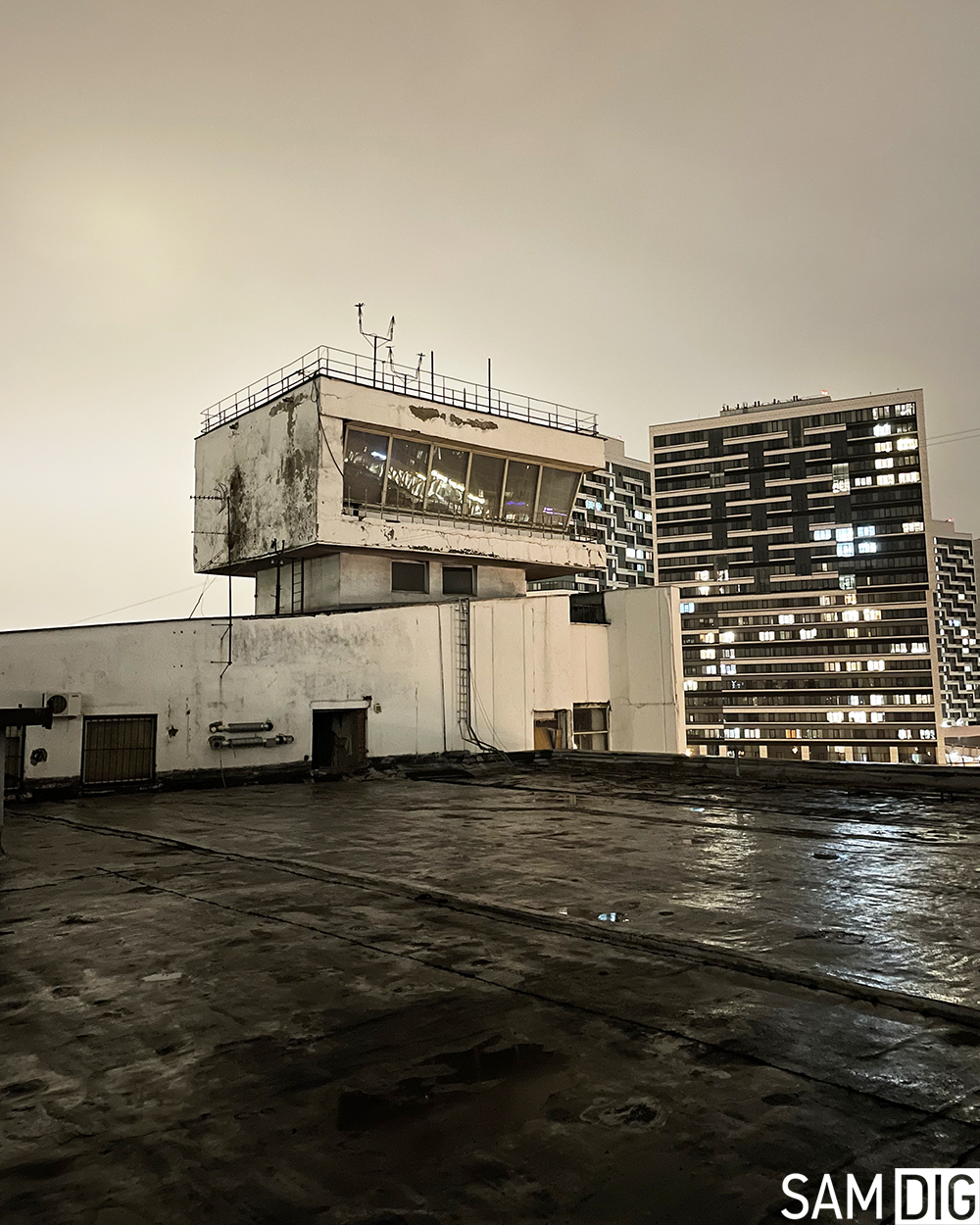 Покажу фотографии изнутри, за неделю до сноса. Для любителей индустриального туризма это место заняло самые высокие места в плане исследования и посещения. Множество подземных коммуникаций, которые уходят под дорогу в сторону других строение комплекса. Огромные технические помещения. Очень интересное решение с лестницей в смотровую башню. Крыша – вполне могла стать БМХ или скейт парком. Под потолком весомые маршевые проходы с одной стороны на другую. Лично я с удовольствием провёл пару часов и любовался советским наследием.
