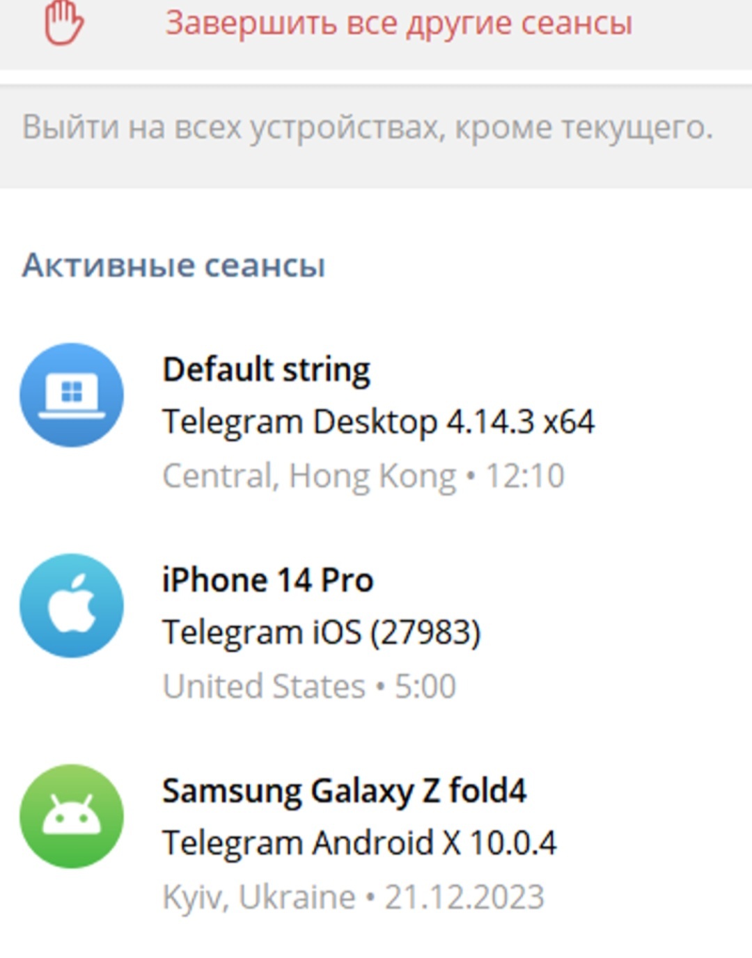 Ах, да, на номере, который мне удалось восстановить, была куча чатов на китайском и три активных сеанса в Киеве, Гонконге, и США.