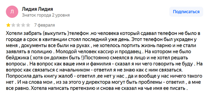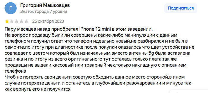 Я нашёл бездонную бочку для обращений в прокуратуру. Тут скупка краденого, работа без контрольно-кассовой техники. И ещё я попрошу проверить их на мошенничество. Если они регулярно продают под видом оригинальной качественной техники непонятно что, то это же мошенничество, верно?