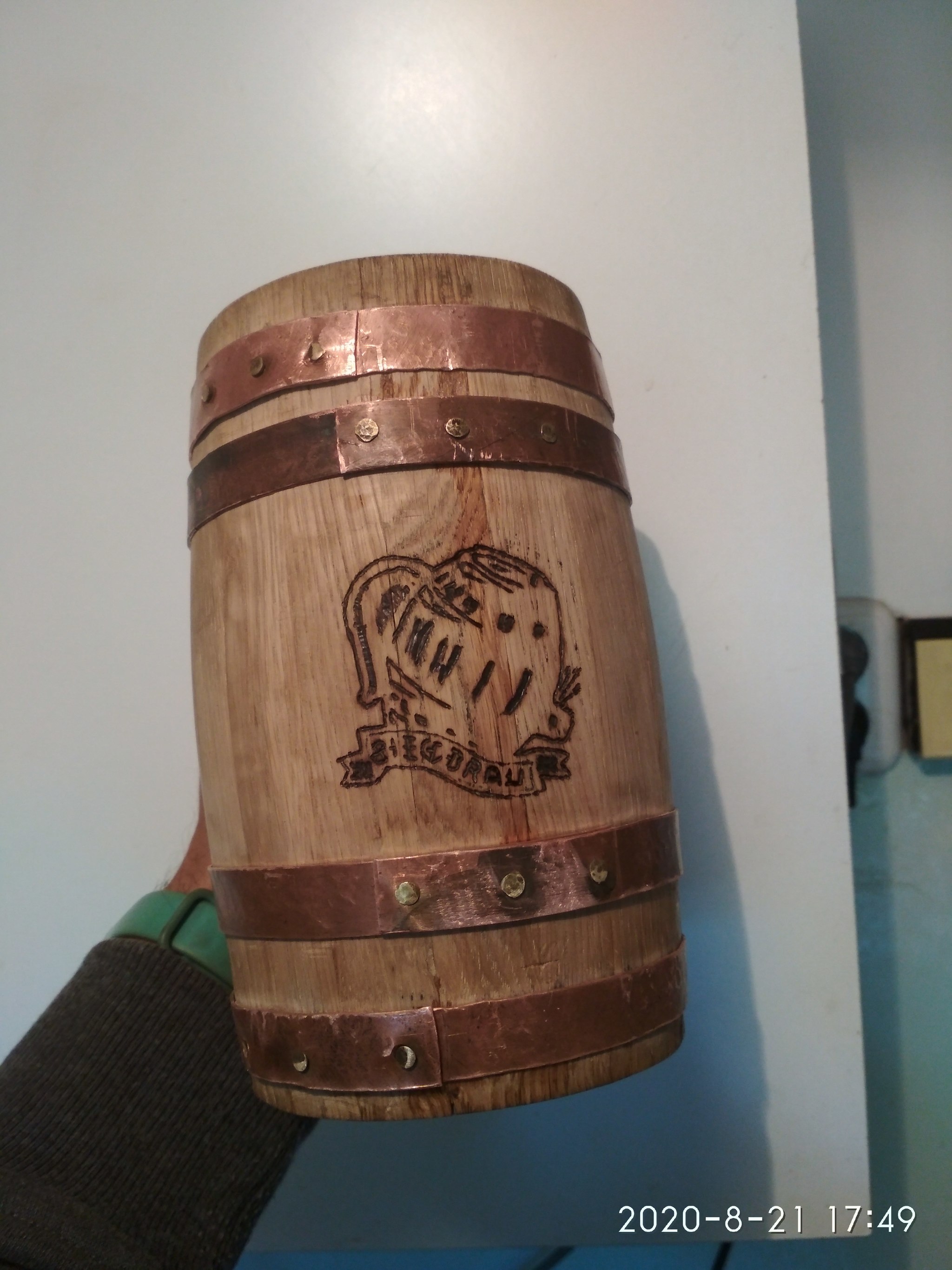 Всегда хотел сделать деревянную бочку, но было непонятно как оно там вообще. И тут озарило - у Сигварда как раз небольшой бочонок для сигбрау.
