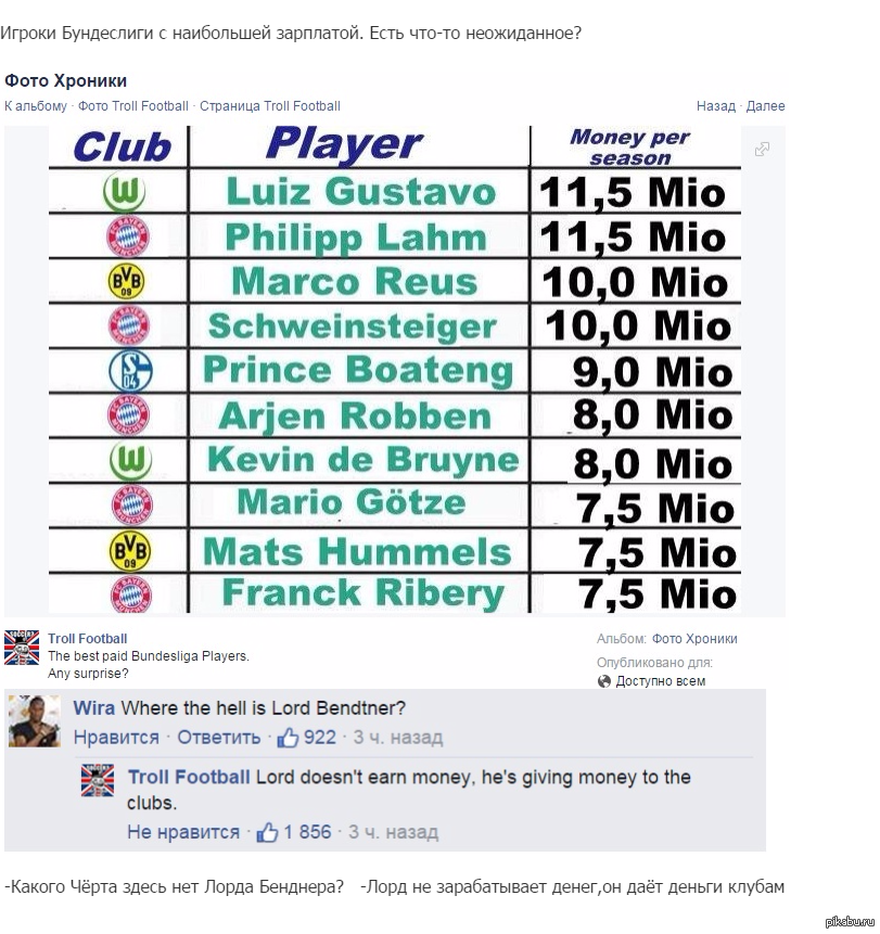 darkness49 10 лет назад Лорд,всегда такой Игроки Бундеслиги с наибольшей зарплатой. Есть что-то неожиданное? Футбол