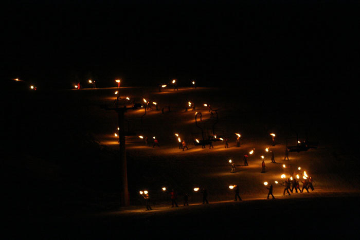 Любопытным образом прибывают Волхвы на местные горнолыжные станции. Конктретно, в Candanchú (Канданчу). При выключенных прожекторах с горы спускается цепочка лыжников с зажженными факелами. Красиво, однако: