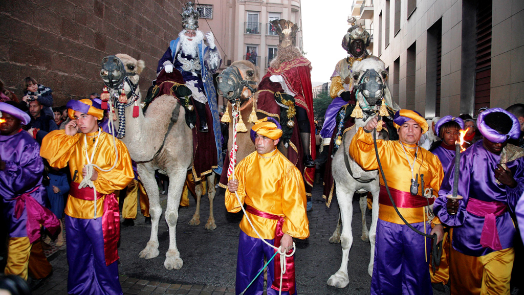 Накануне, вечером 5го января, повсеместно проходят шествия, знаменующие прибытие этих самых Волхвов. Чем больше город, тем ярче шествие. Кавалькада может выглядеть так, поскольку Волхвы по традиции добираются в Испанию из дальних стран на верблюдах: