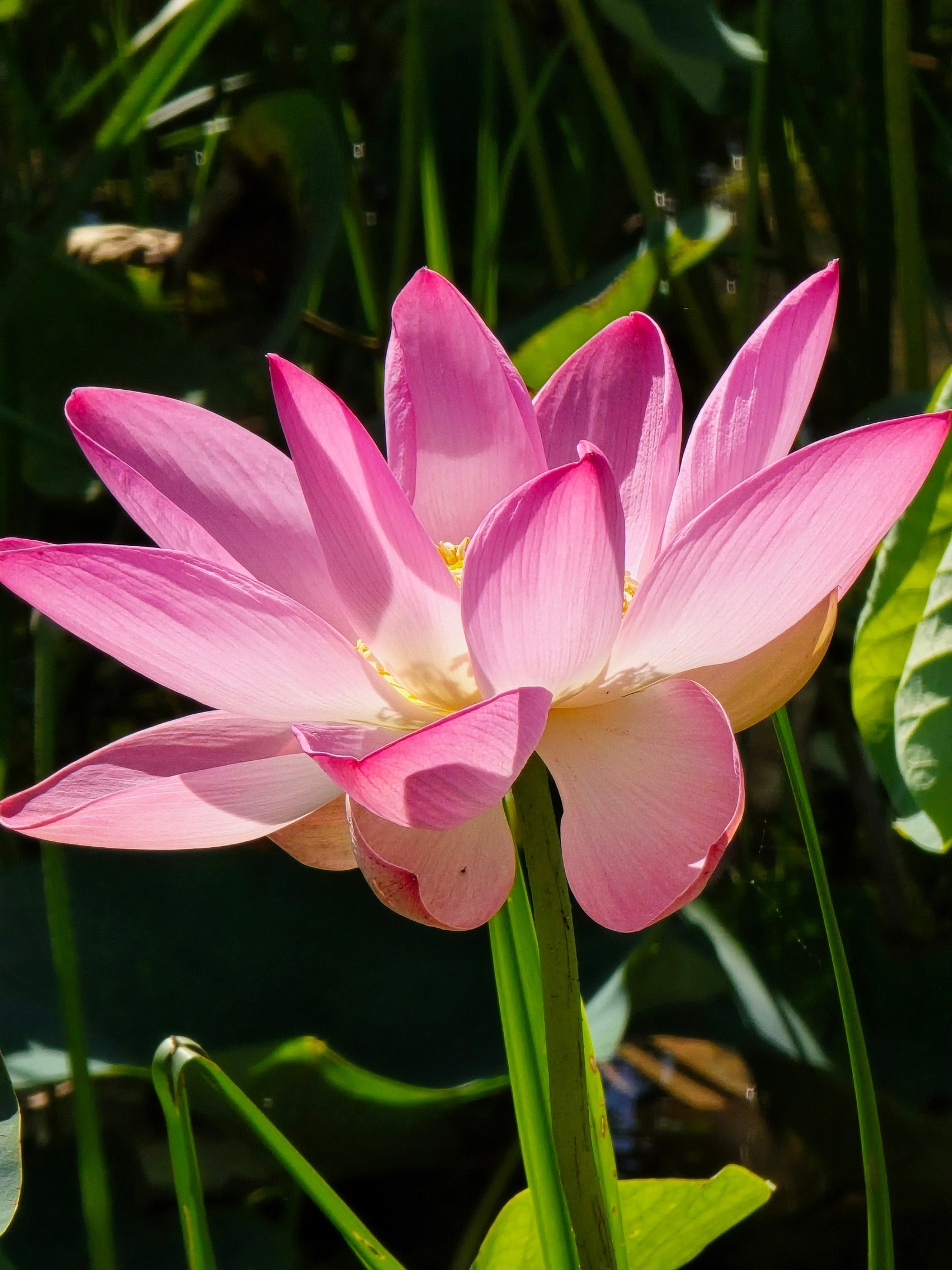 Крупные розовые цветки поднимаются над водой на высоких цветоножках. Каждый цветок цветет только два-три дня. Сначала он ярко-розовый, а потом постепенно бледнеет до почти белого цвета.