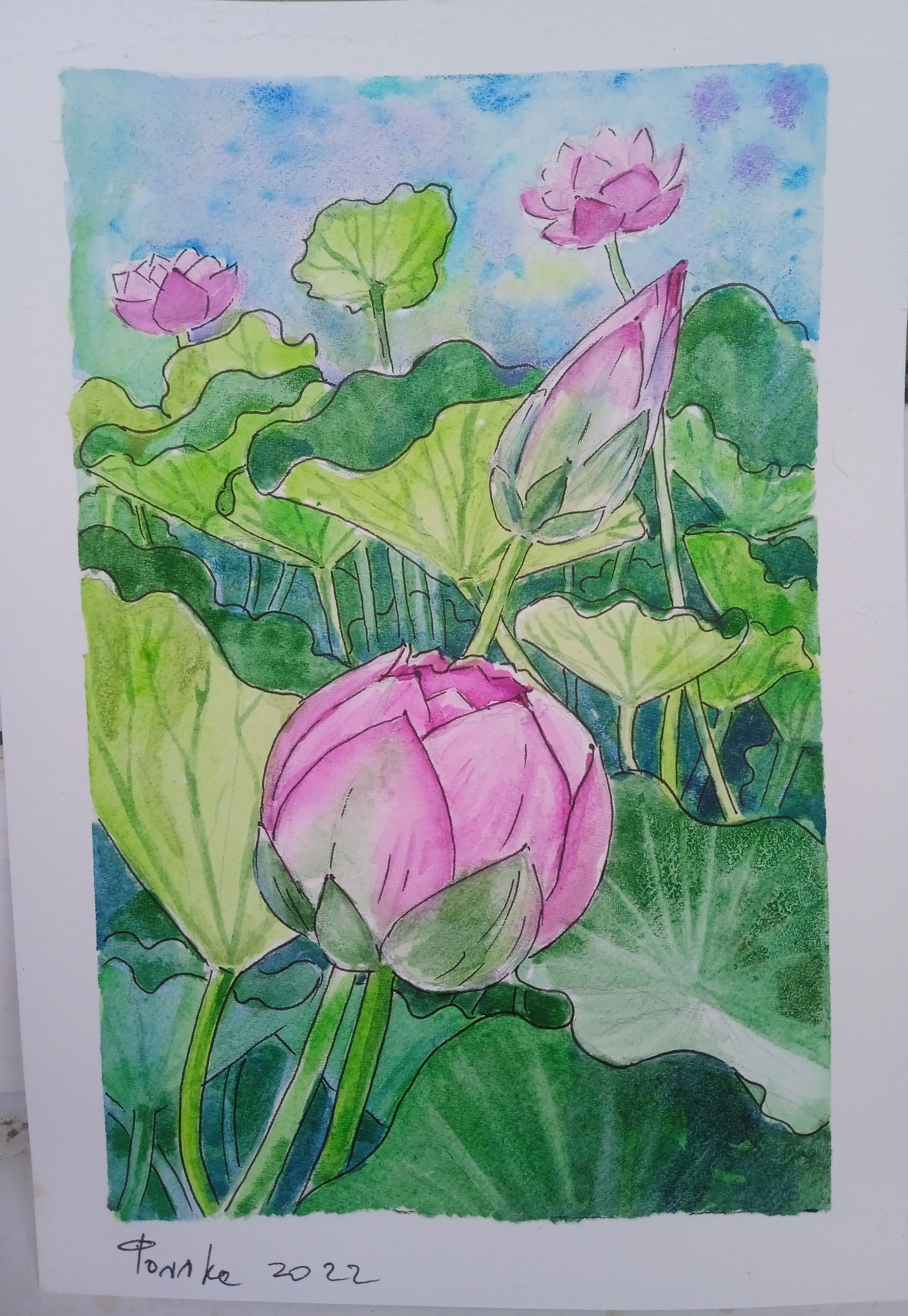 Недавно поняла, что растючки то я хреново рисую, решила наверстать и устроить неделю лотосов. Уж очень красивые штуки. А6, акварель, линер.