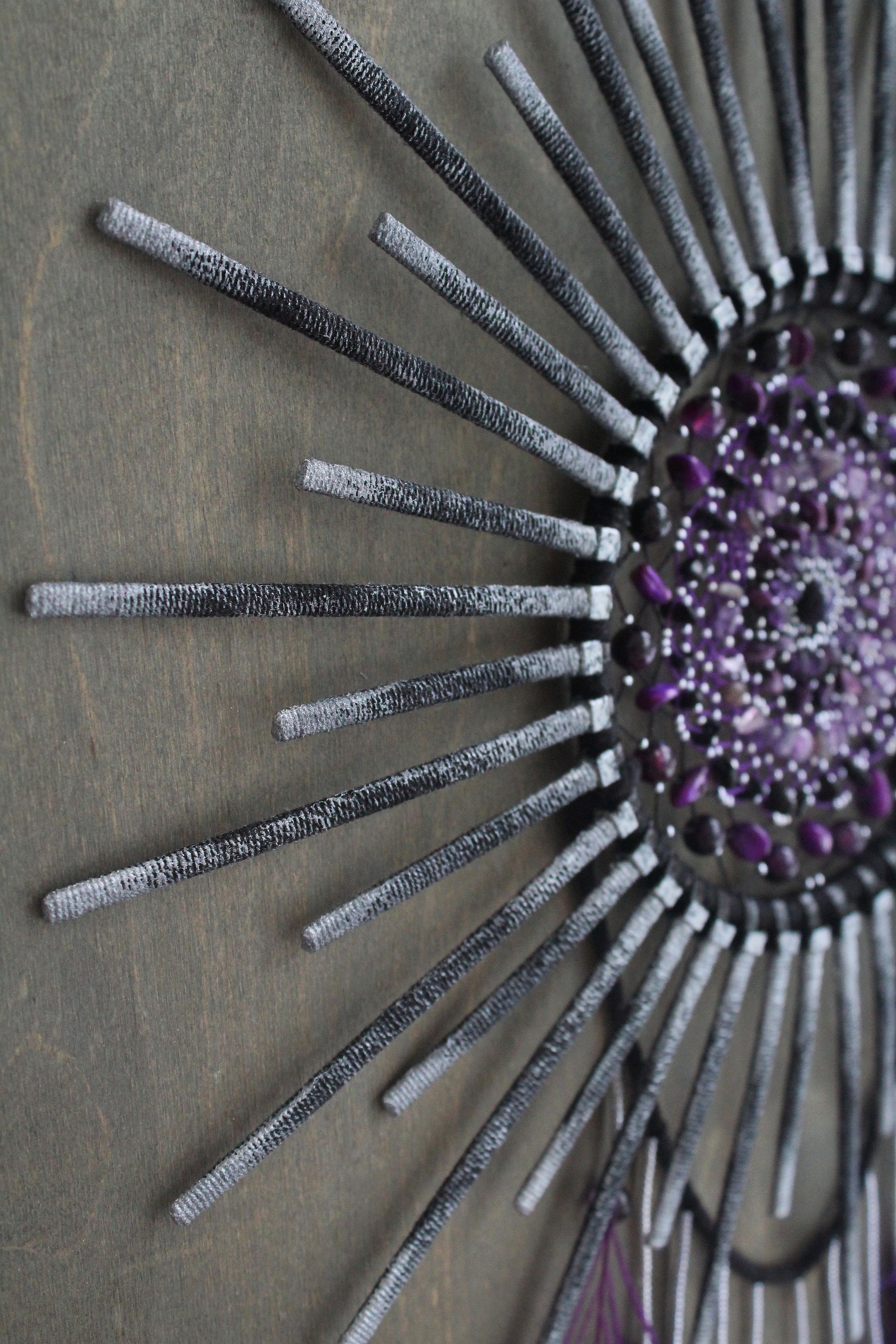 Каждый луч обмотан хлопковой нитью и тонирован серебряной акриловой краской