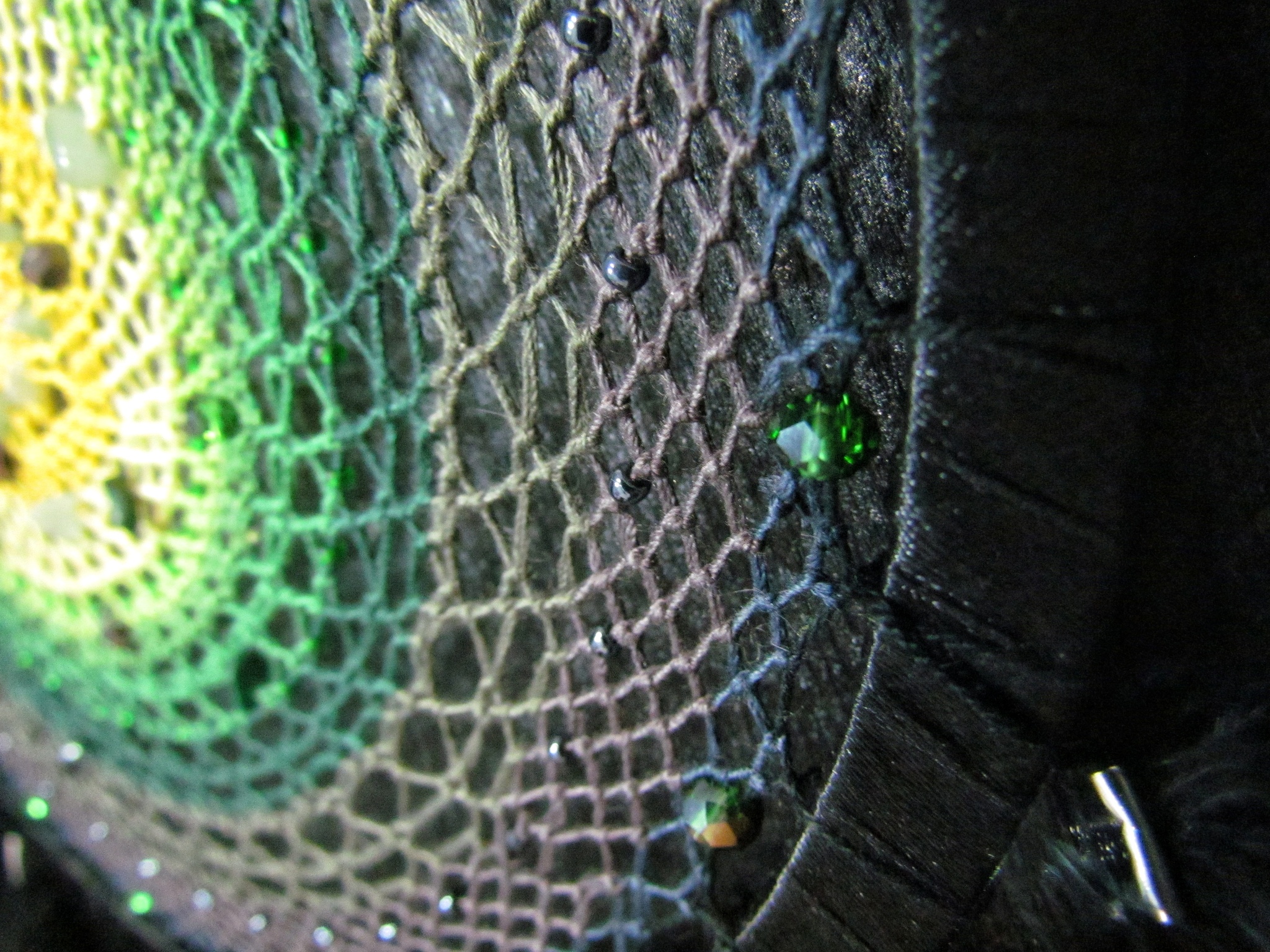 Кроме цвета, пожеланием было также плавный переход цветов от чёрного к жёлтому, и рандомное расположение камней по всему плетению. Мне кажется, вышло очень стильно и лаконично, несмотря на яркие цвета)