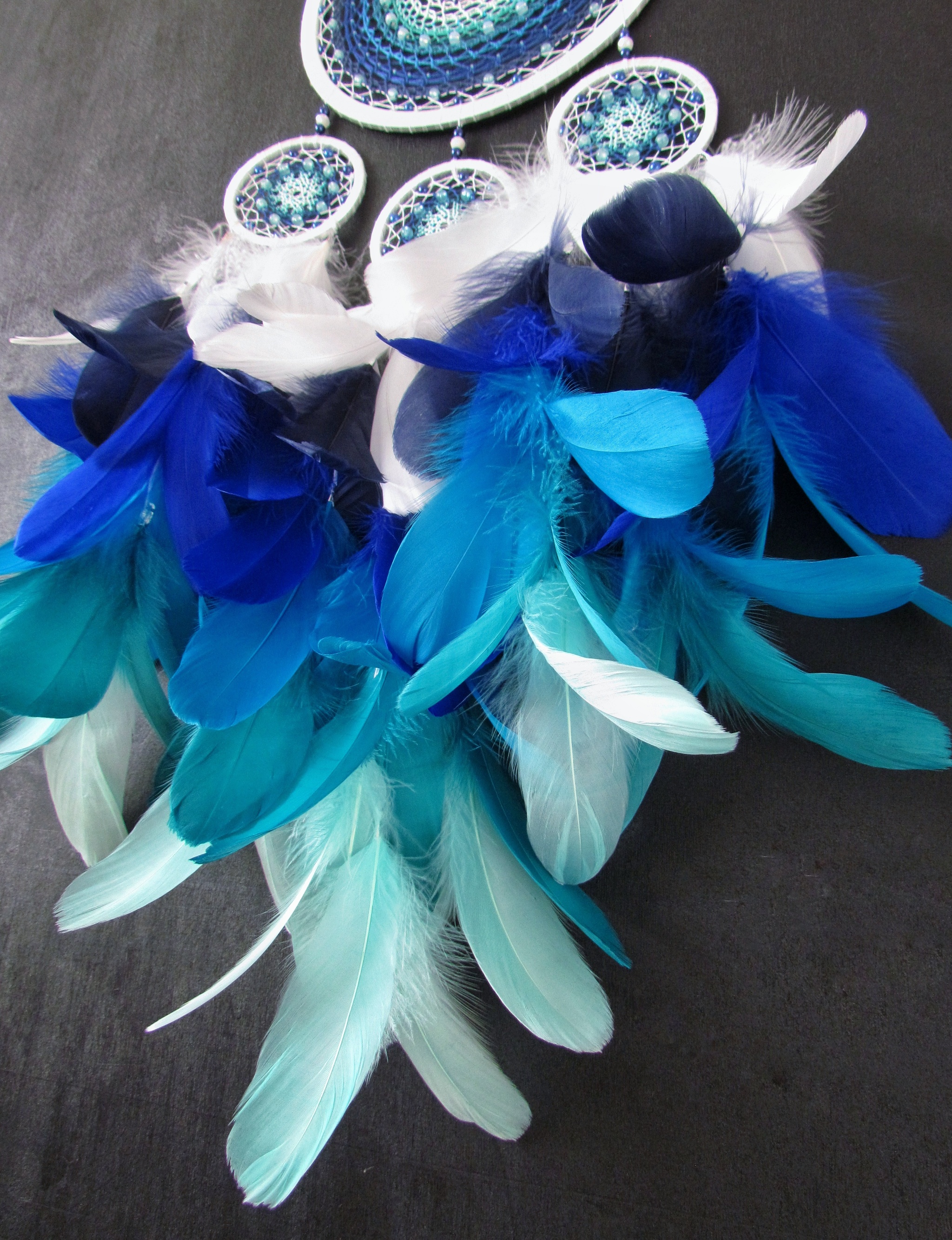Скоро лето, начнется сезон отпусков, и многие люди наверняка поедут на море. Счастливчики) мне в этом году море точно не светит, к сожалению( Поэтому когда заказчик попросил ловец снов в морской цветовой гамме, я даже обрадовалась) вот что у меня получилось: