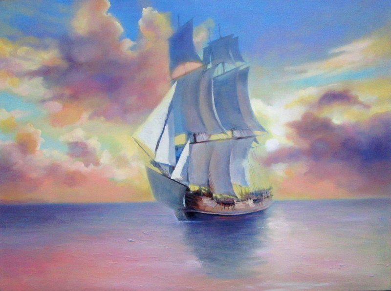 93 sfhwz Ловец ветра 9 лет назад живопись маслом на холсте [моё] Живопись Картина маслом Море Парусник Пейзаж Арт