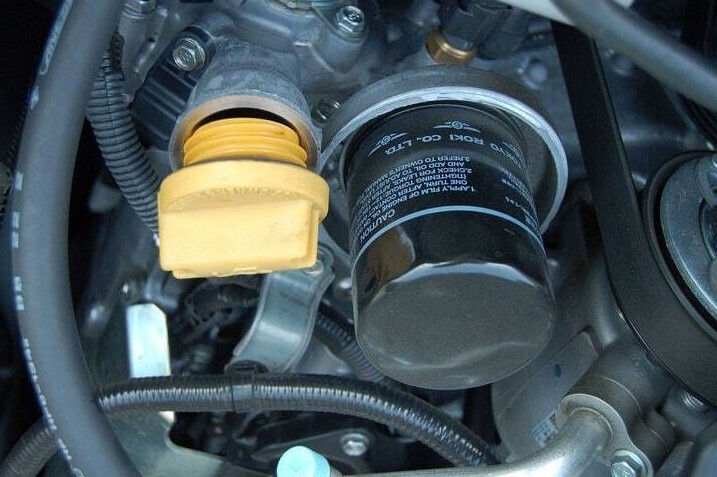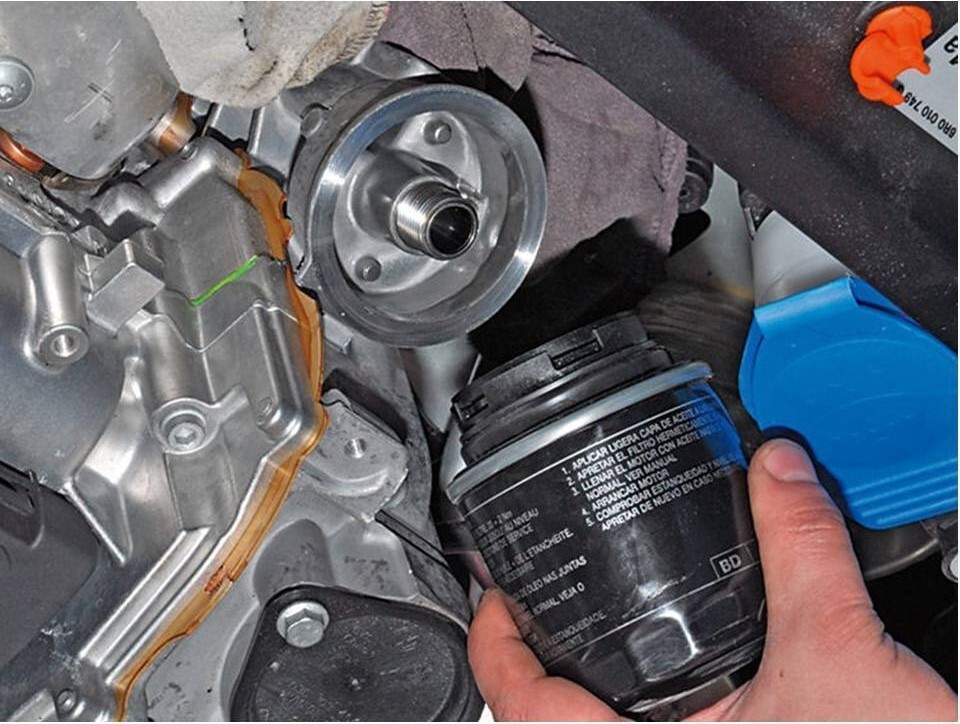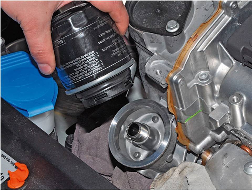 Не у всех машин масленные фильтры прикручиваются снизу. Те, кто говорит, что в фильтр, перед прикручиванием, нужно обязательно заливать масло, покажите - как вы будете прикручивать сюда фильтр с залитым в него до краёв маслом?