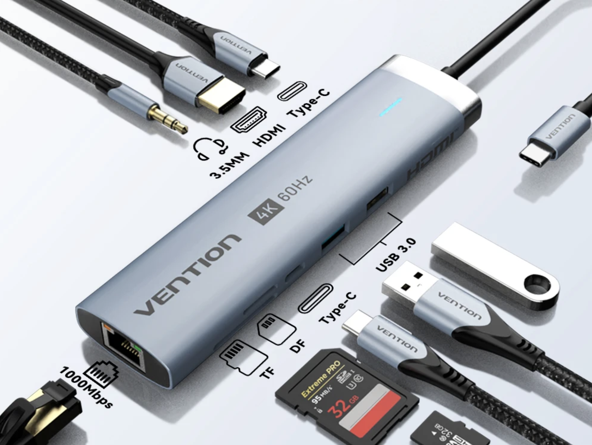 USB-C Hub Vention 9-в-1 расширяет возможности ноутбуков и планшетов, предоставляя порты для HDMI, USB-A, SD, microSD и Type-C. Он позволяет подключать несколько устройств одновременно, обеспечивая удобство работы с периферией. Дизайн и алюминиевый корпус делают хаб долговечным и стильным дополнением к рабочему месту.