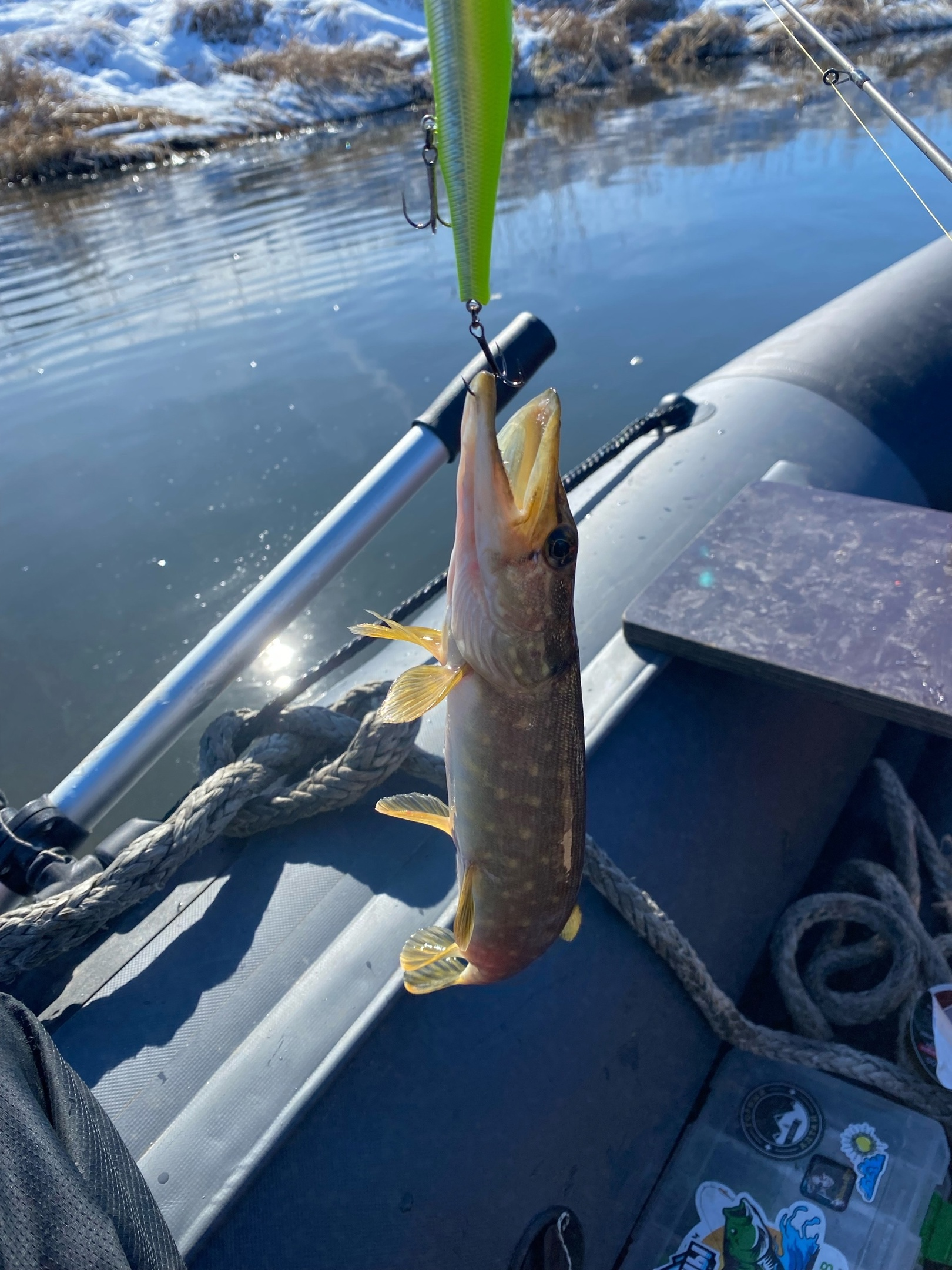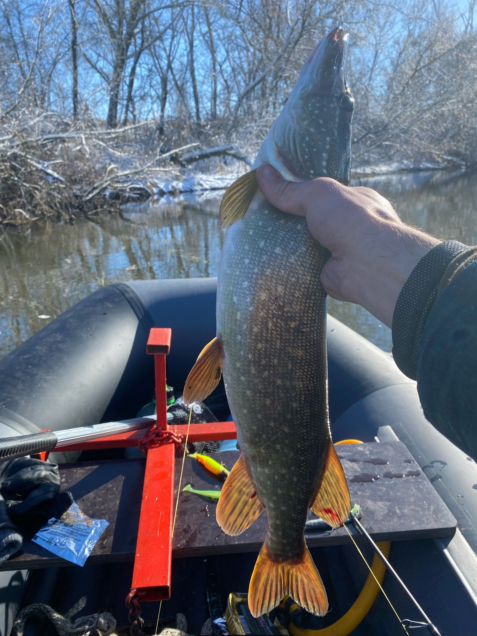 Вот такая красавица зашла на воблер Jackall Rerange на нашей небольшой речке. Очень долго уговаривал эту красавицу в заводи в глухом коряжнике. Вижу, что щуки много. Малька гоняет, как сумасшедшая. Но приманки не берет. Ни резина от Keitech не работала, ни мандула, ни блесна. Решил поставить недавно купленный воблер — и на паузе хороший такой удар. Почти 2 килограмма. Для нашей небольшой реки, где, в основном, клюют шнурки, как на 3 фото, это хороший результат.
