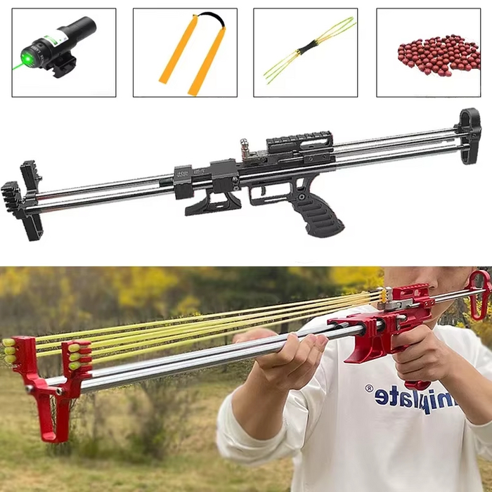 Звучит как фантастика, но эта рогатка может стрелять не только металлическими шариками, но и стрелами, привязанными к леске. Крепится к ней катушка с фонариком, что позволяет использовать рогатку даже ночью.